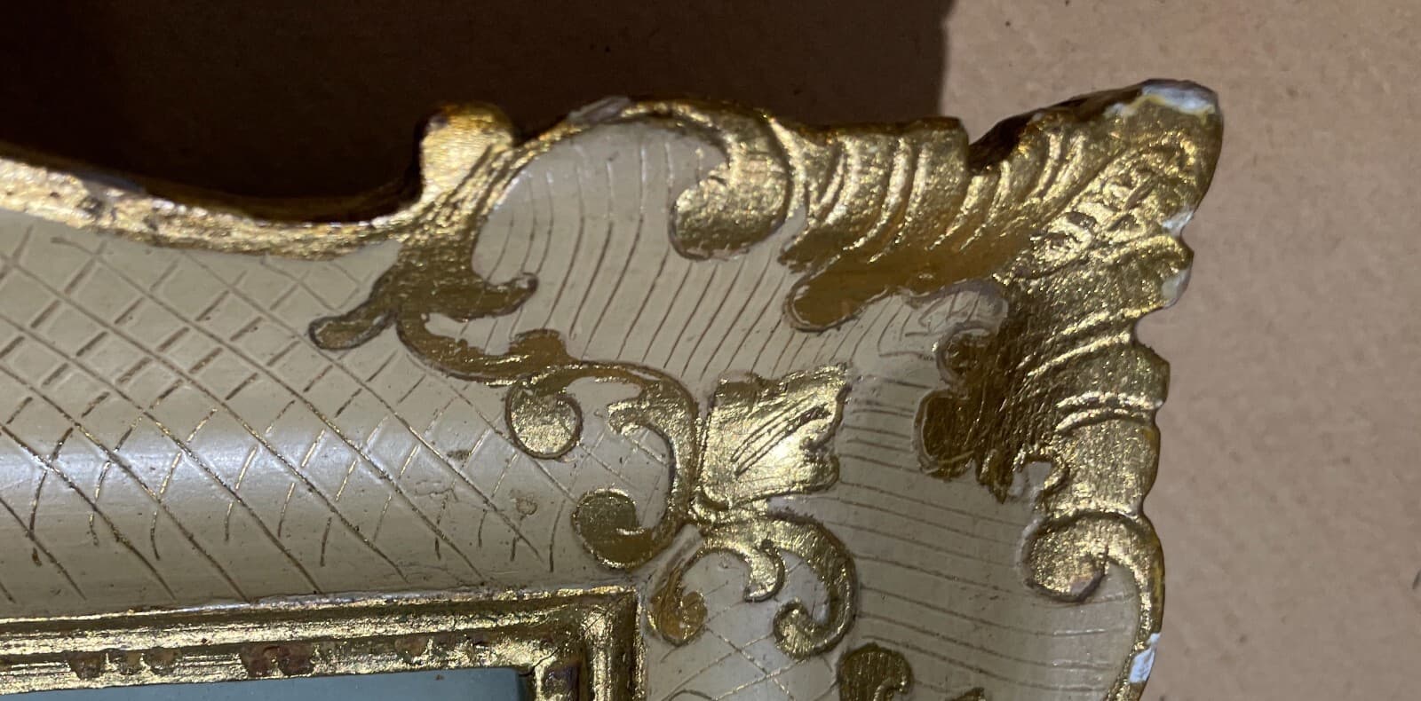 Cornice Decorativa In Legno Laccato E Parzialmente Dorato