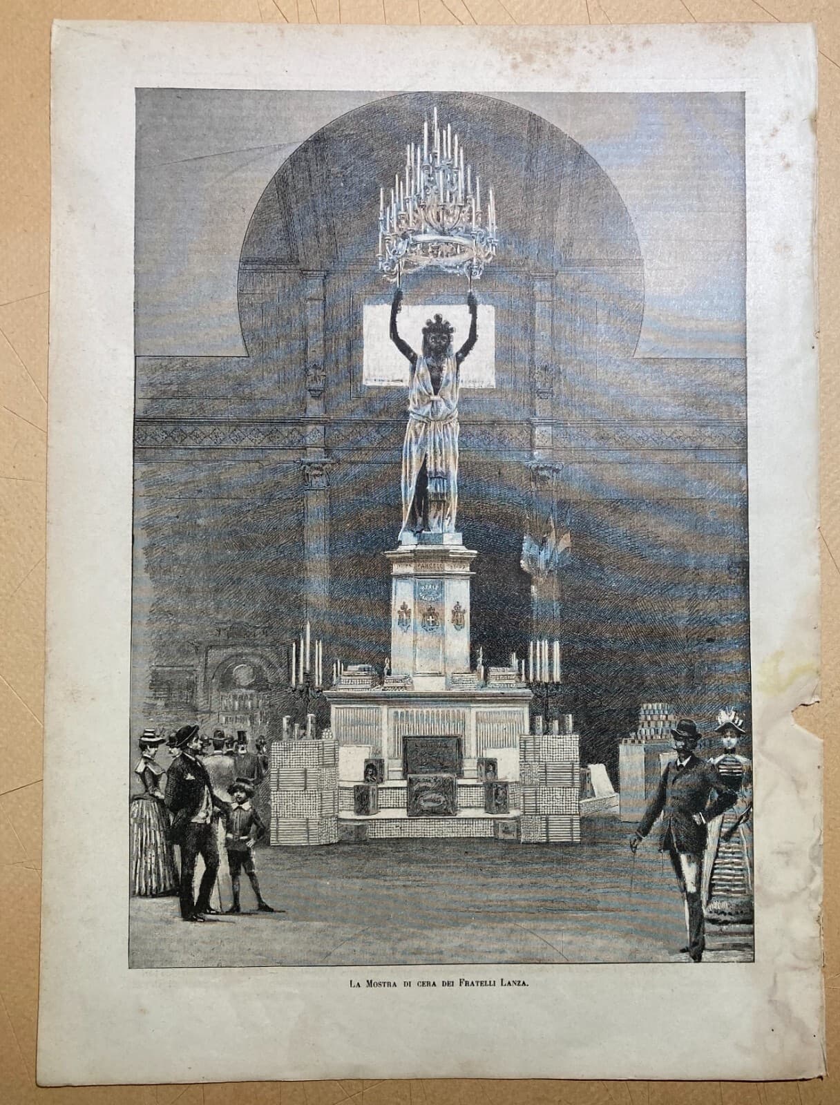 Esposizione 1884 Antica Stampa Pubblicitaria Fratelli Lanza Cera Candele d'Epoca