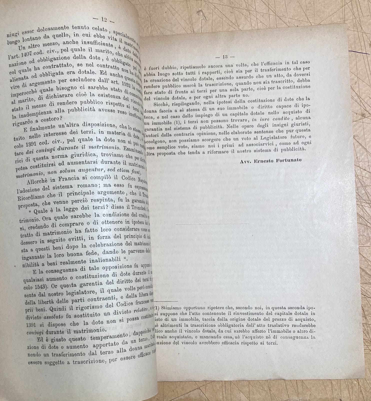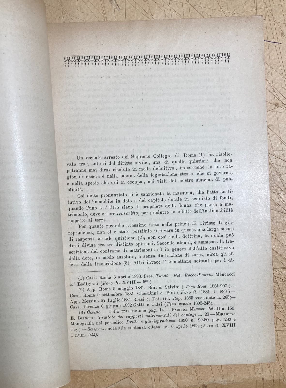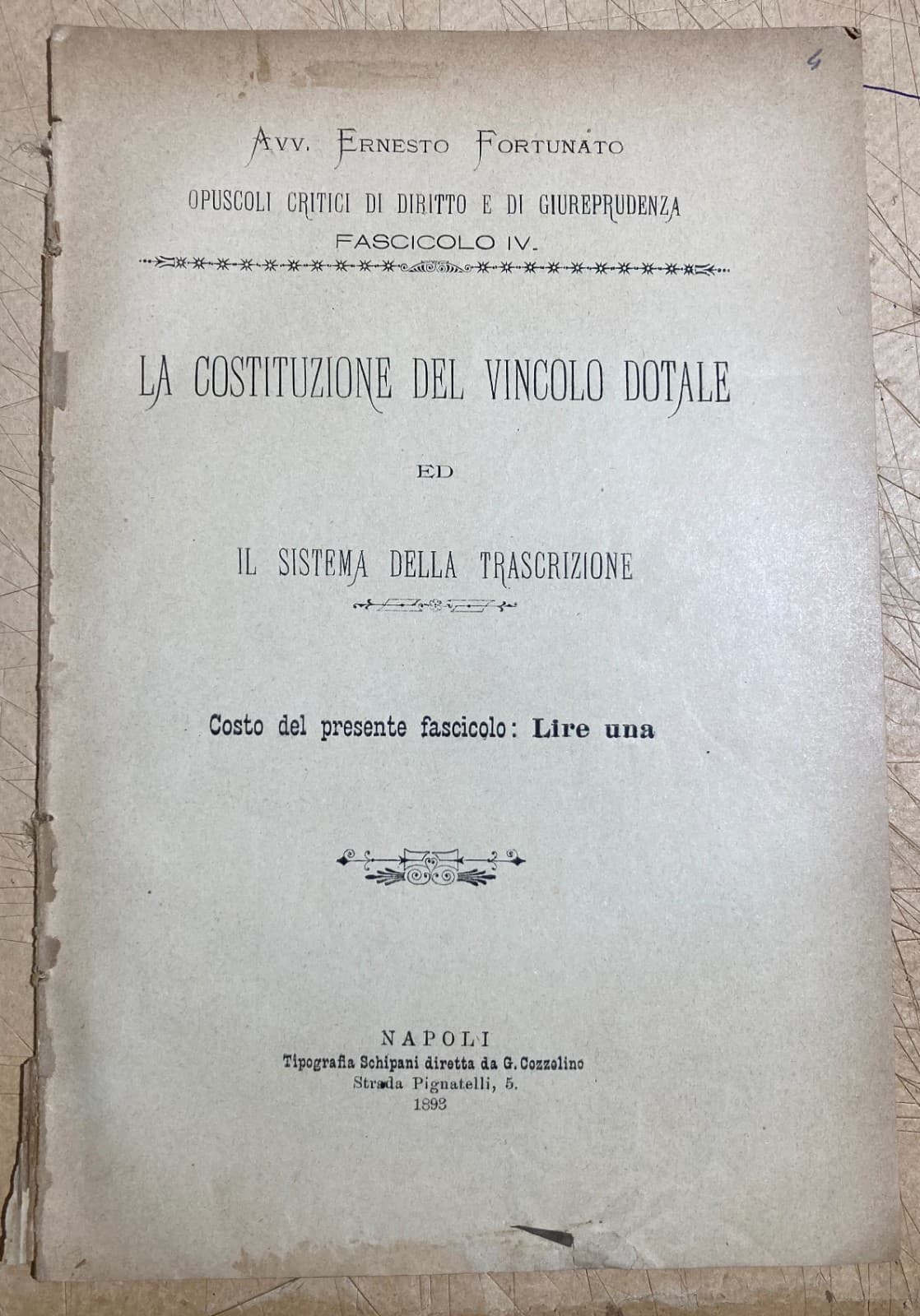 Giuridica, Notariato, Vincolo Dotale, Trascrizione: Ernesto Fortunato, 1893