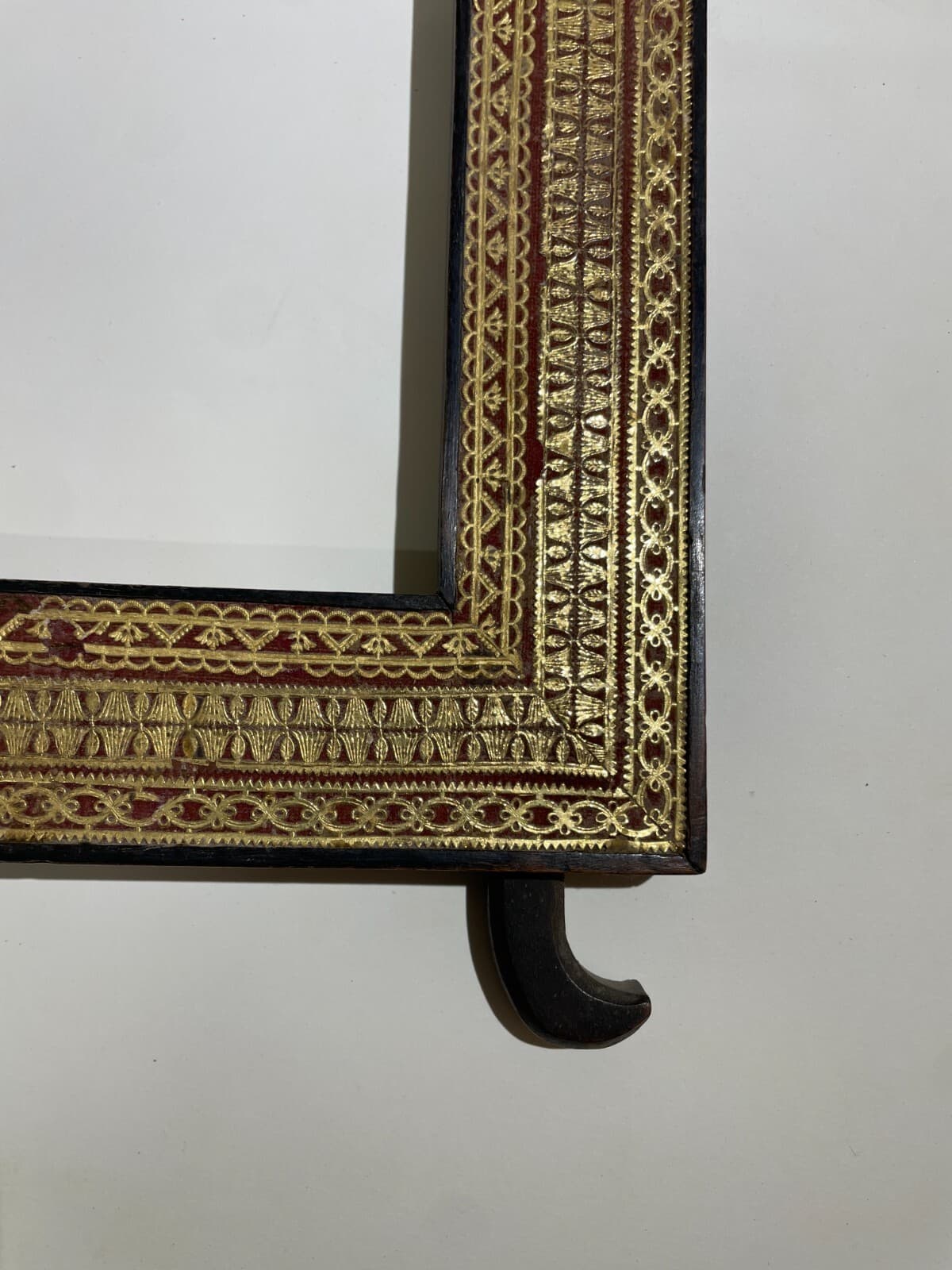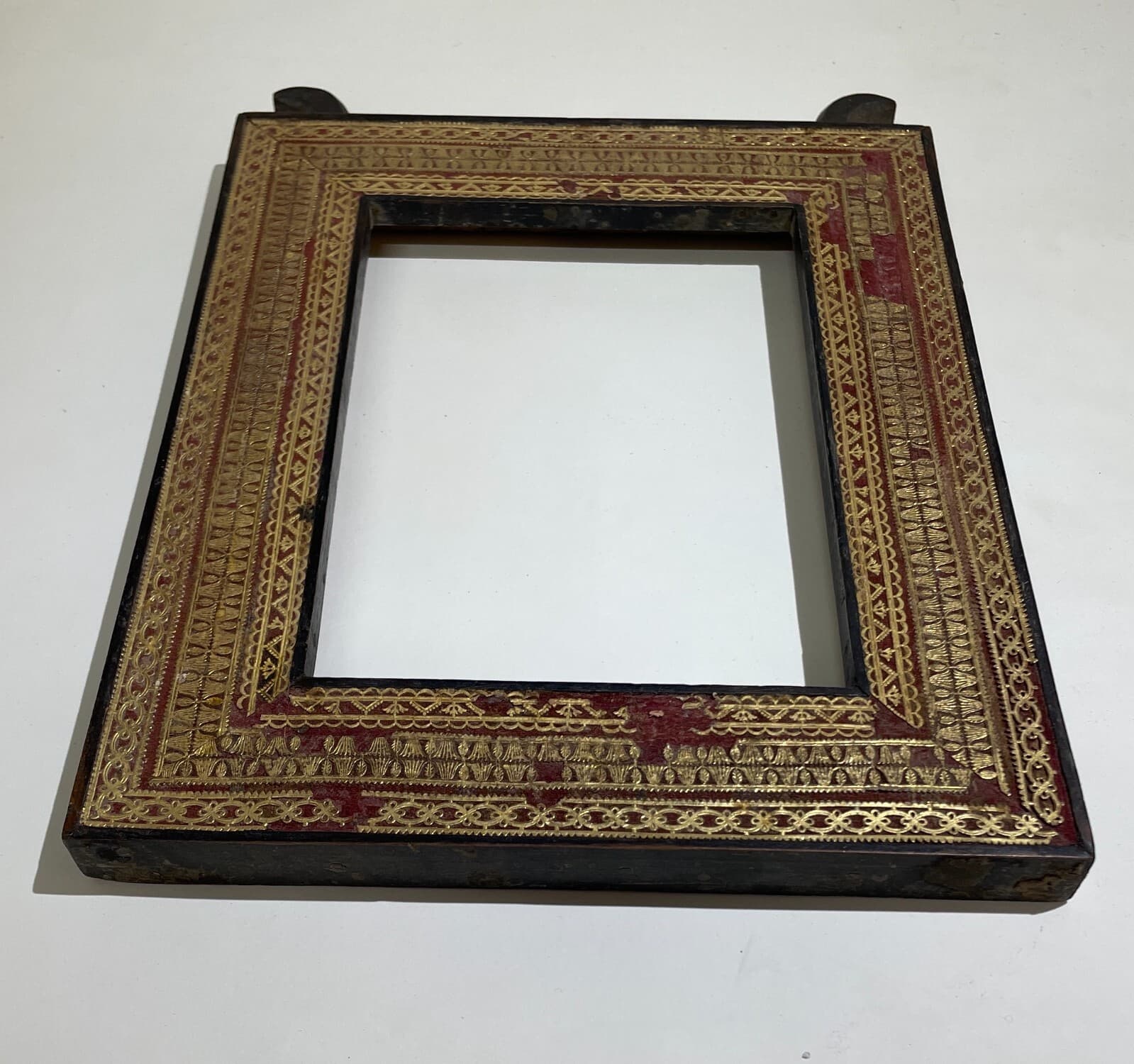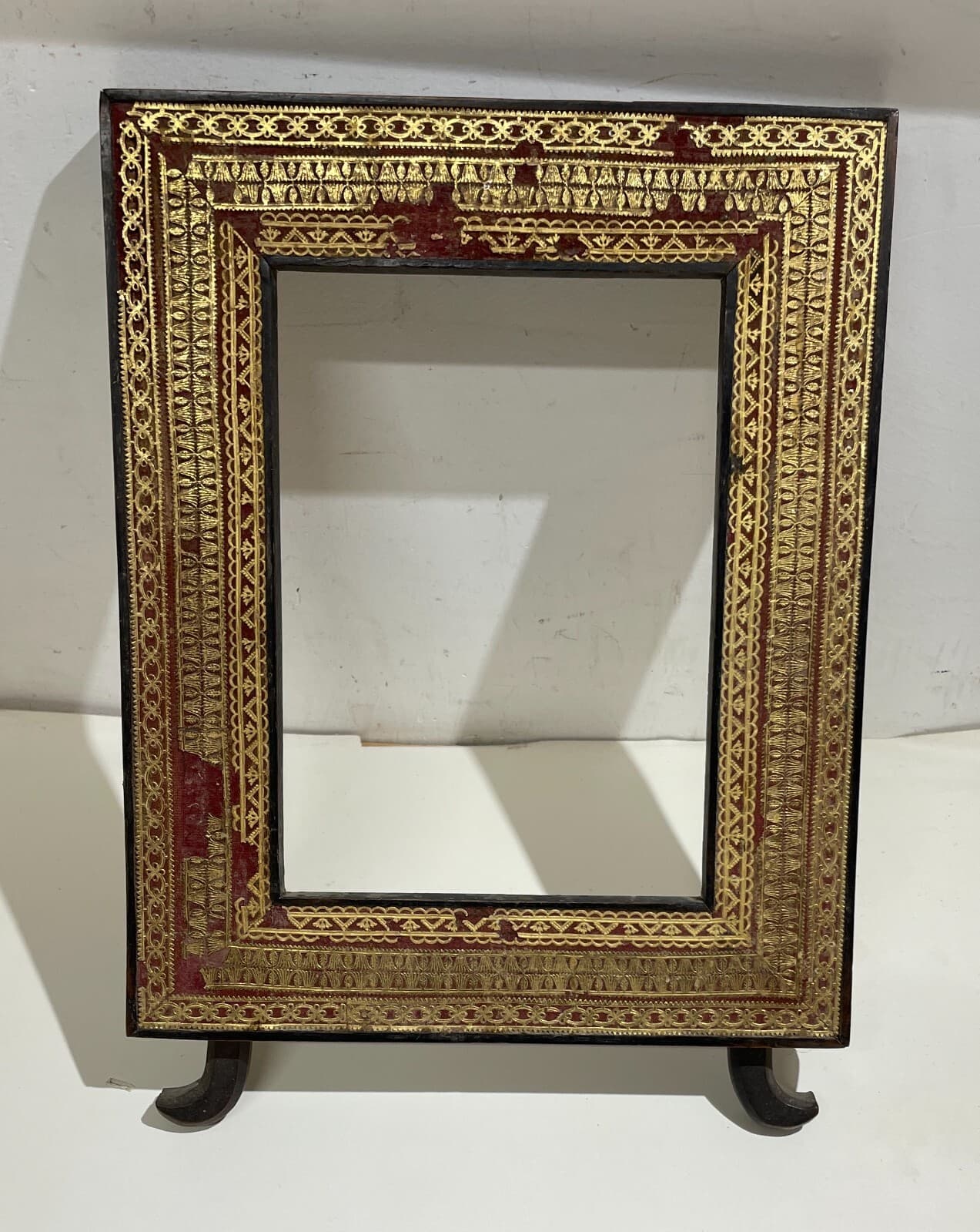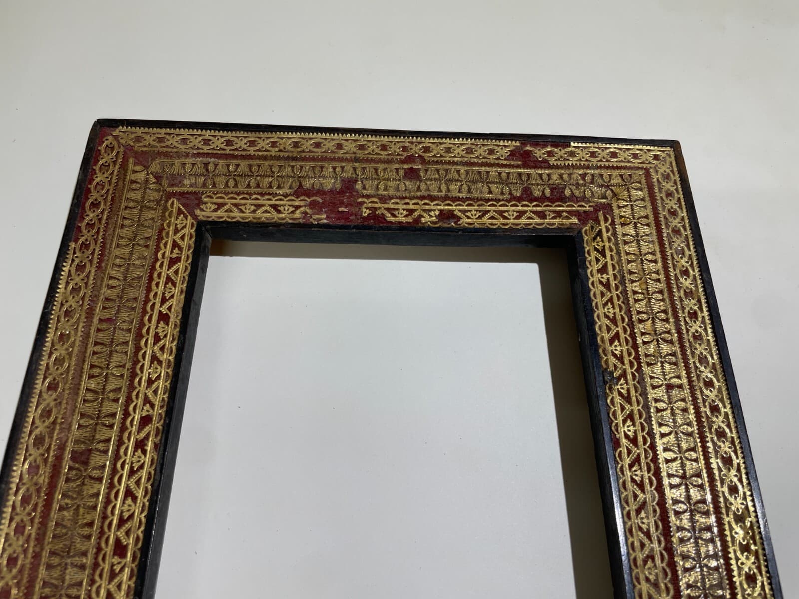 Antica Cornice In Legno Con Decorazione In Carta Dorata Applicata