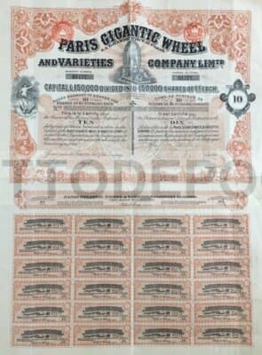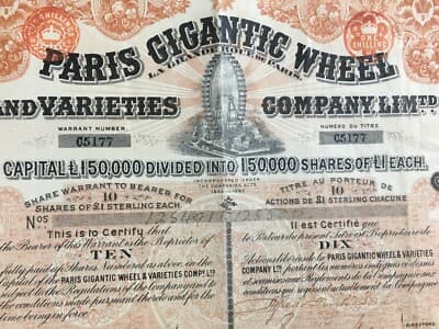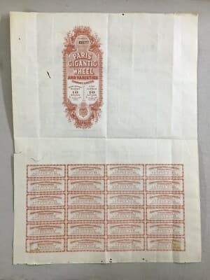Parigi, Esposizione Universale. Grande Ruota Panoramica. Certificato Azionario, 1900