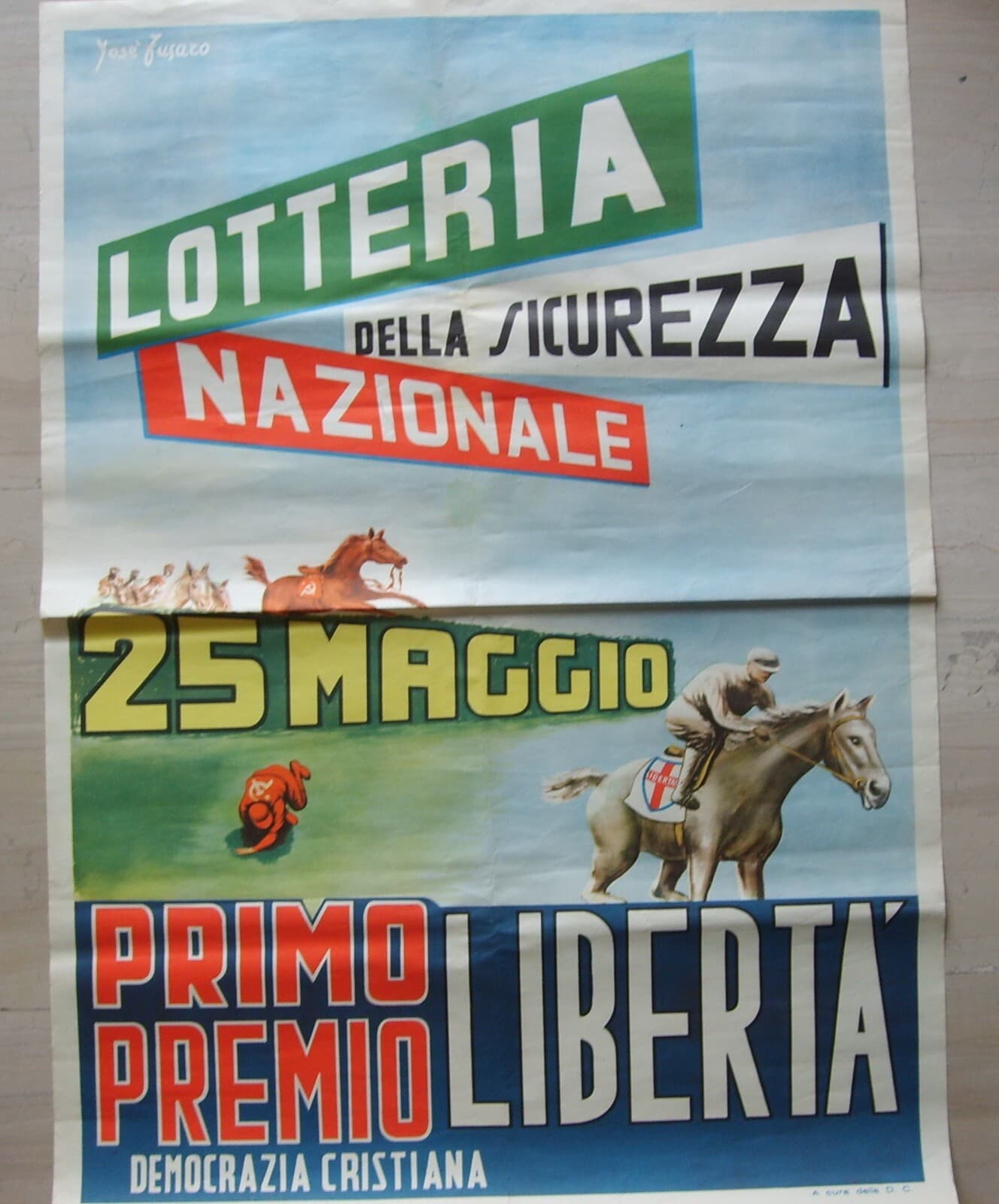 Manifesto Propaganda Politica Democrazia Cristiana, Lotteria Della Sicurezza Nazionale, José Fusaro
