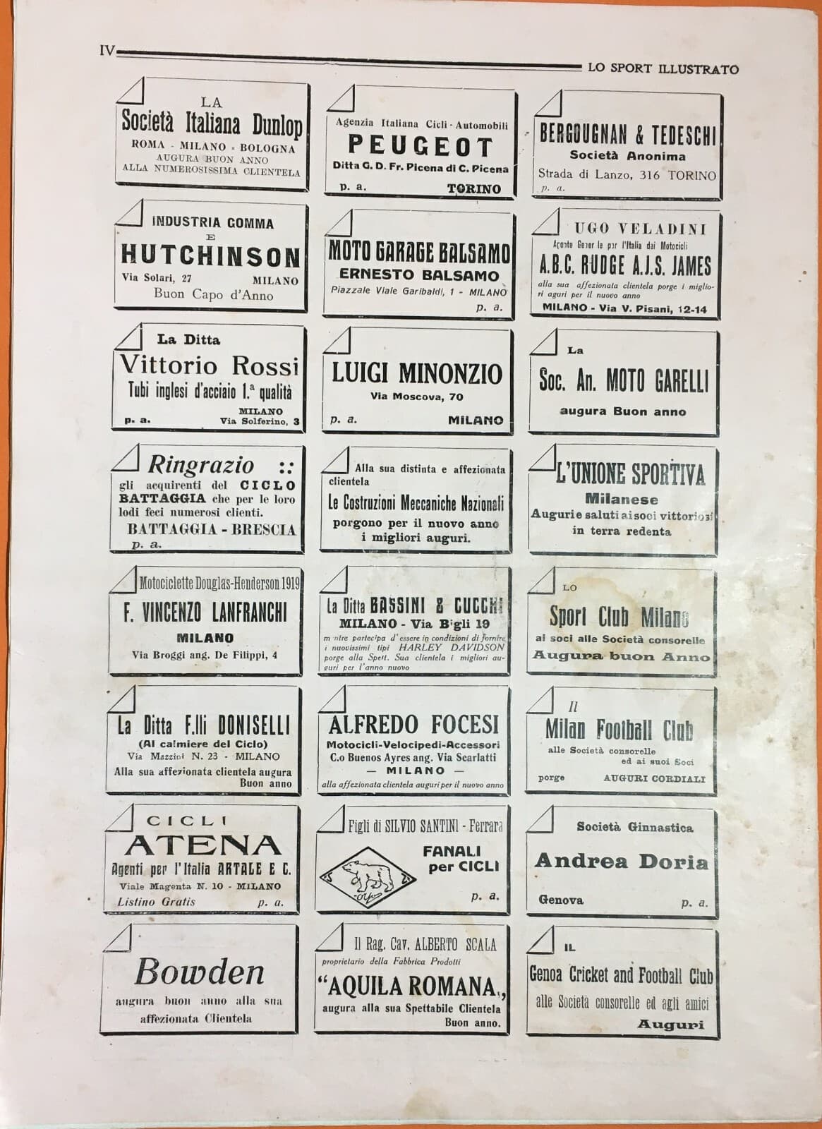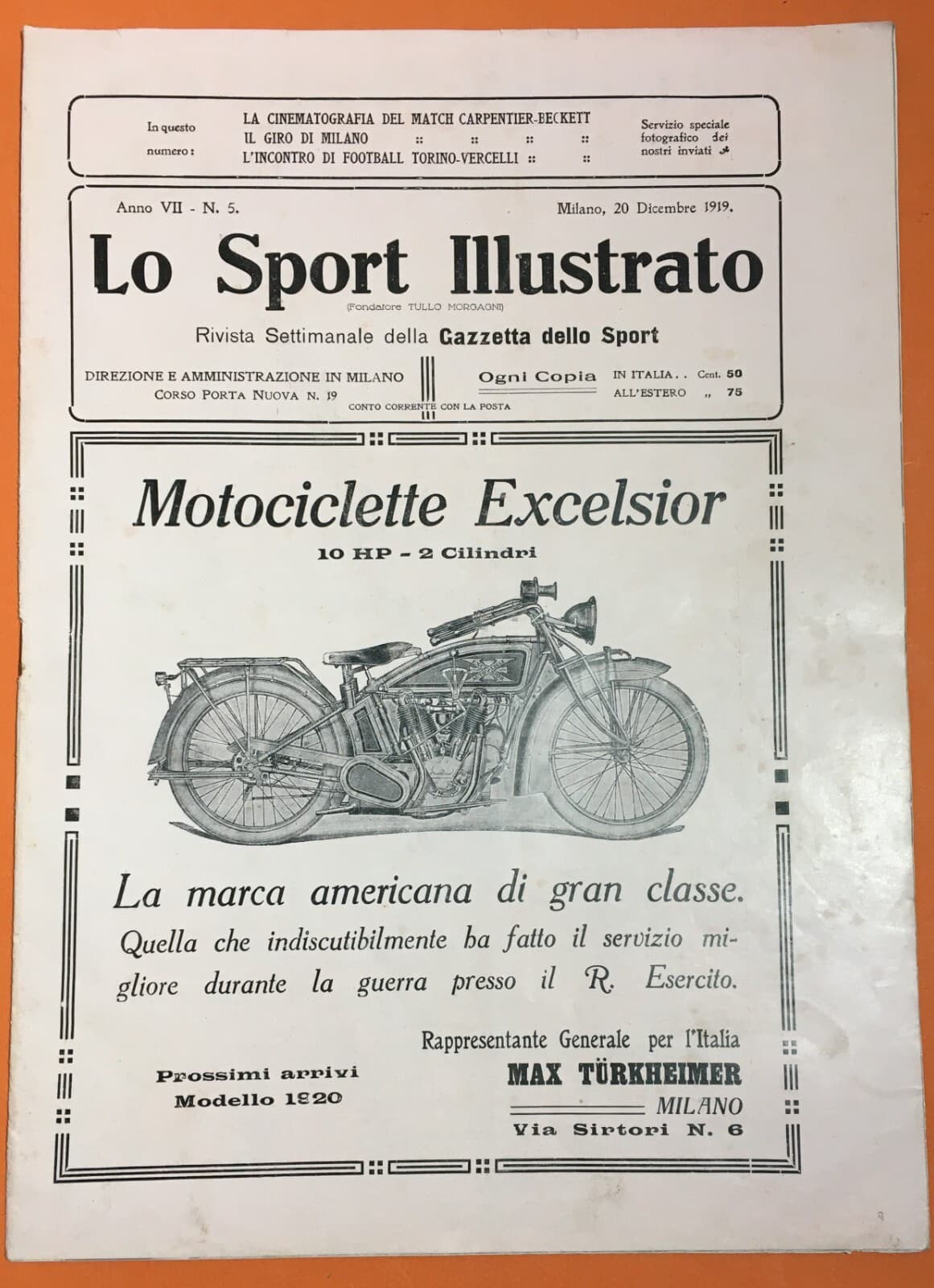 Lo Sport Illustrato: Calcio, Boxe E Motori 20 Dicembre 1919
