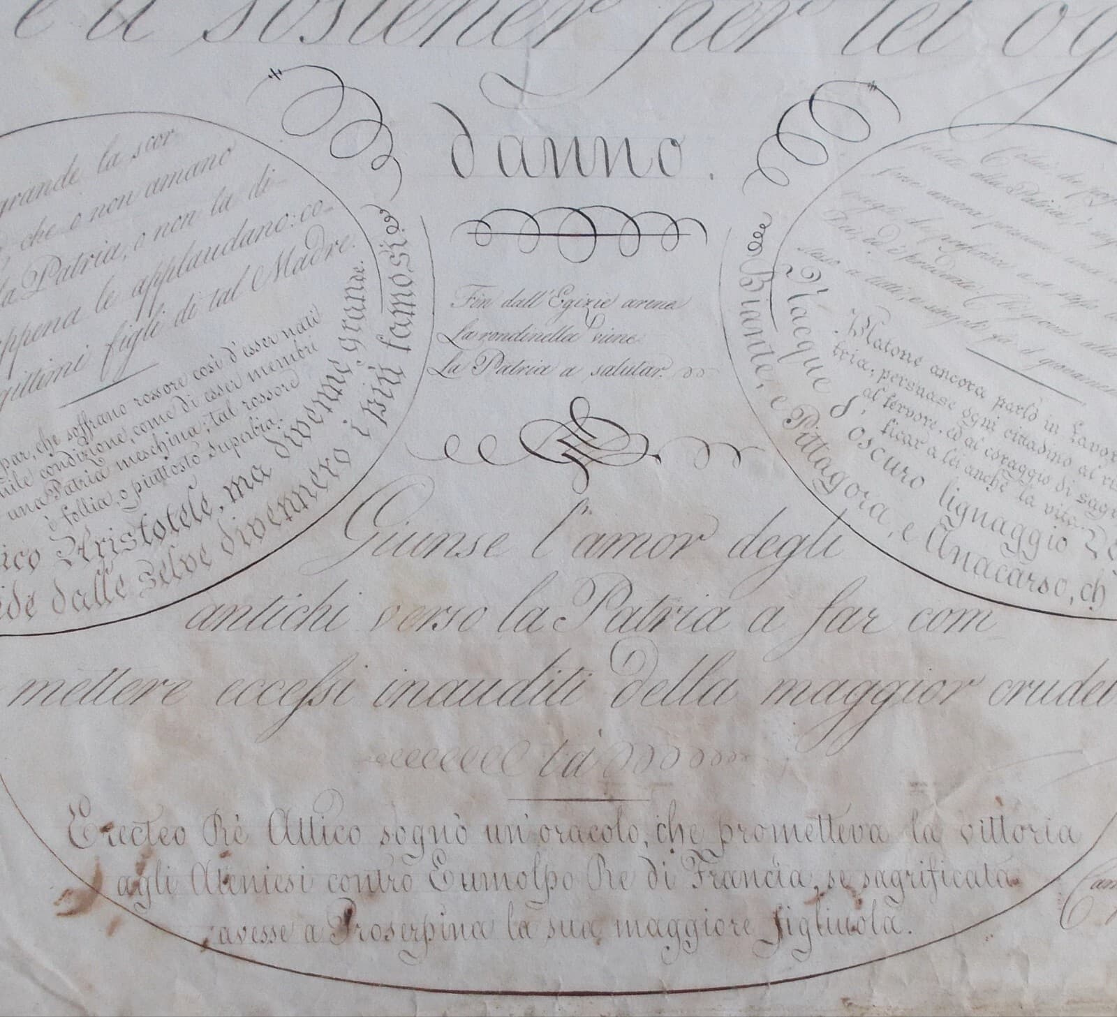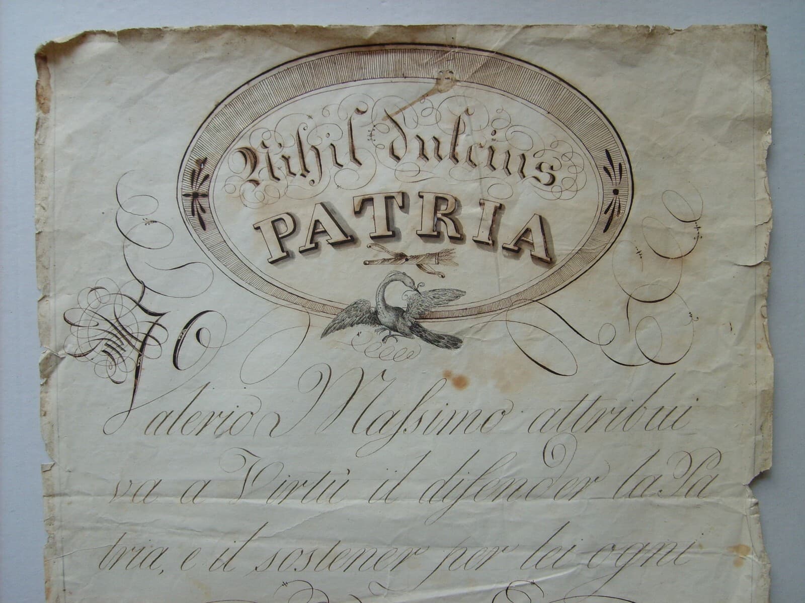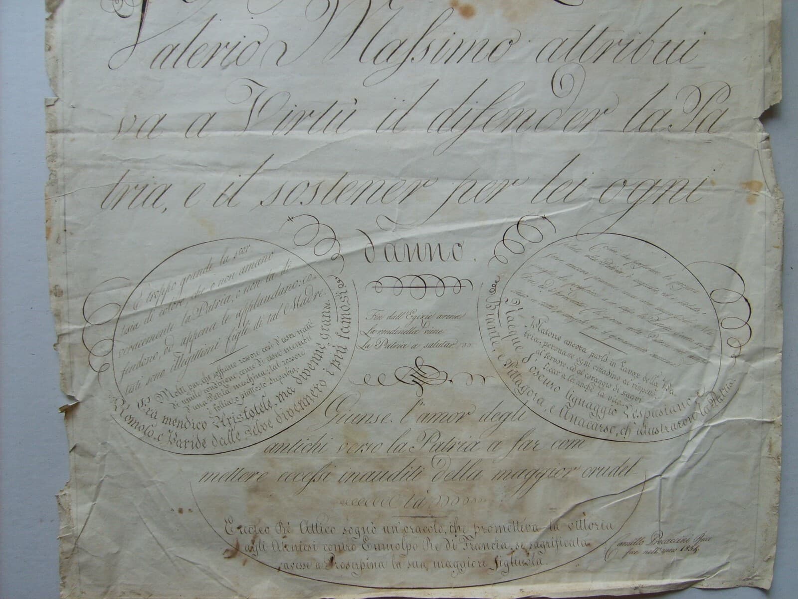 Scrittura, Calligrafia E Motti Patriottici: Rarità Calligrafica Di Camillo Procaccini Ricci