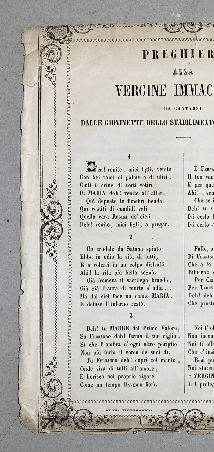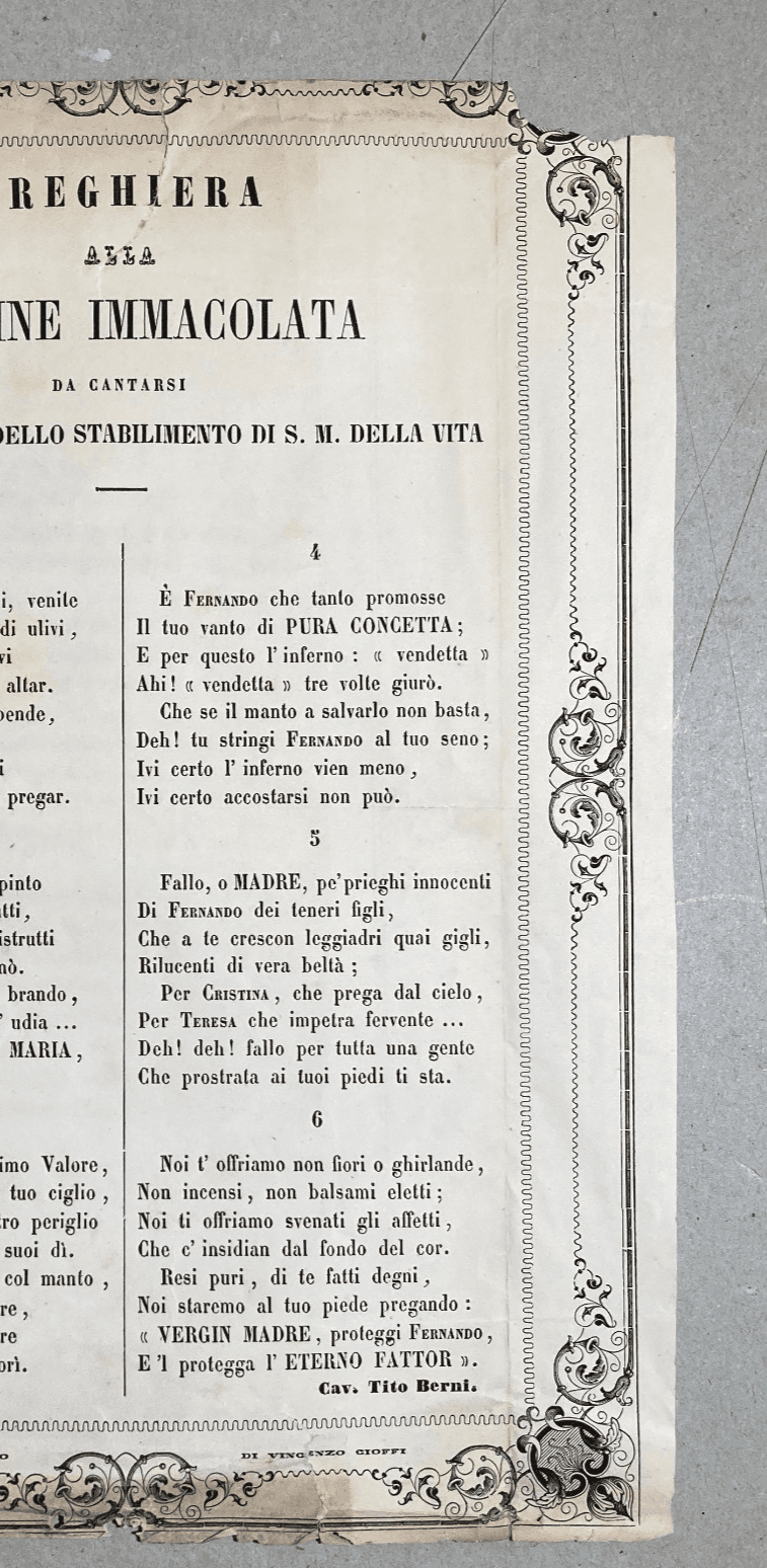 Santa Maria Della Vita Antico Foglio Volante Devozionale Preghiera Berni Cioffi
