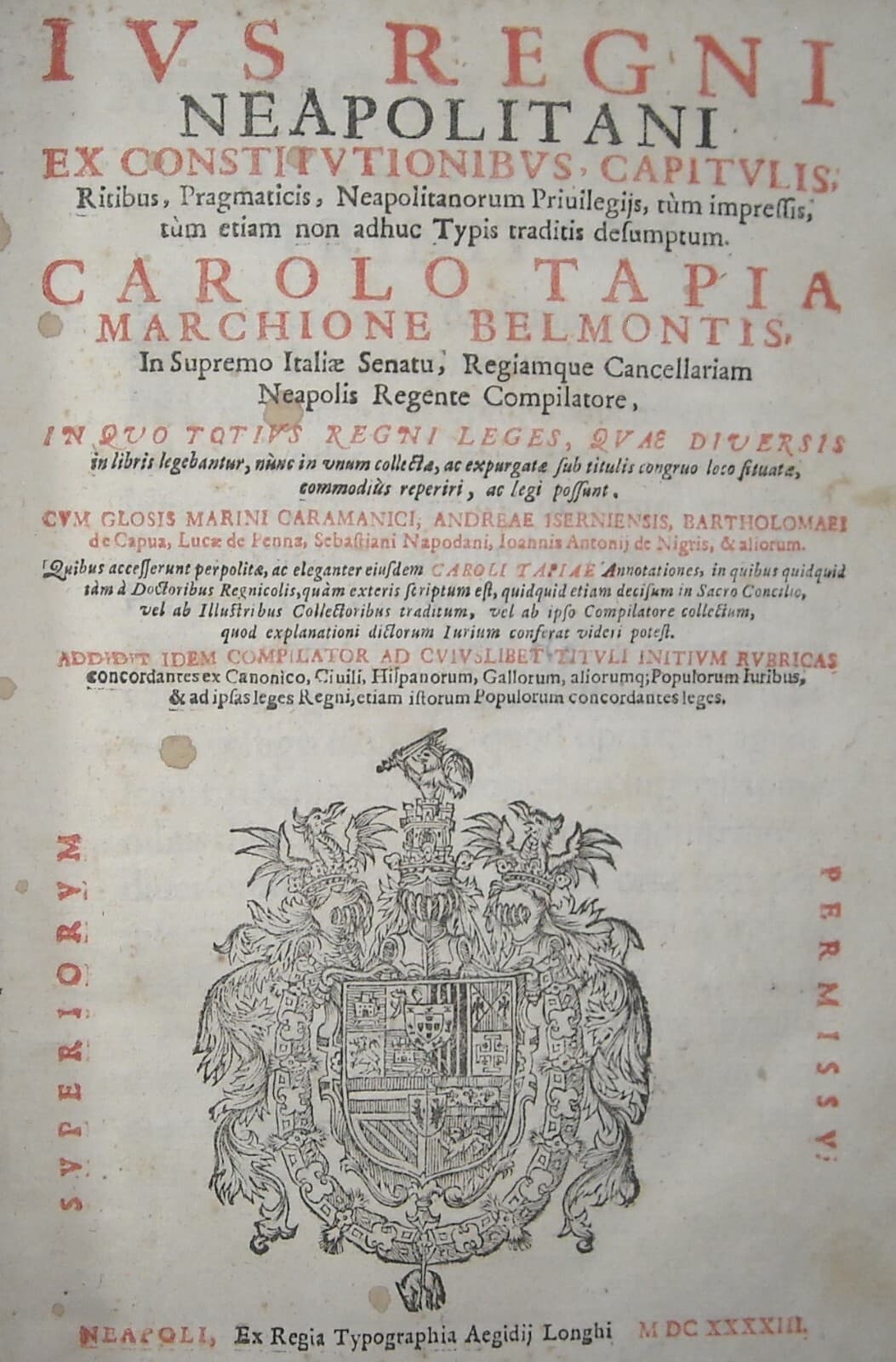Campania, Giuridica: Prammatiche Napoletane, Tapia, Edizione 1643, Legatura In Pergamena