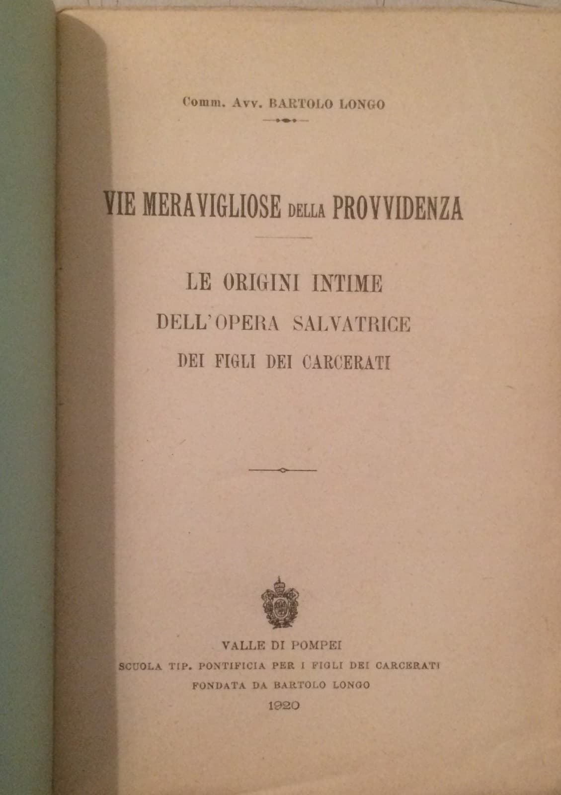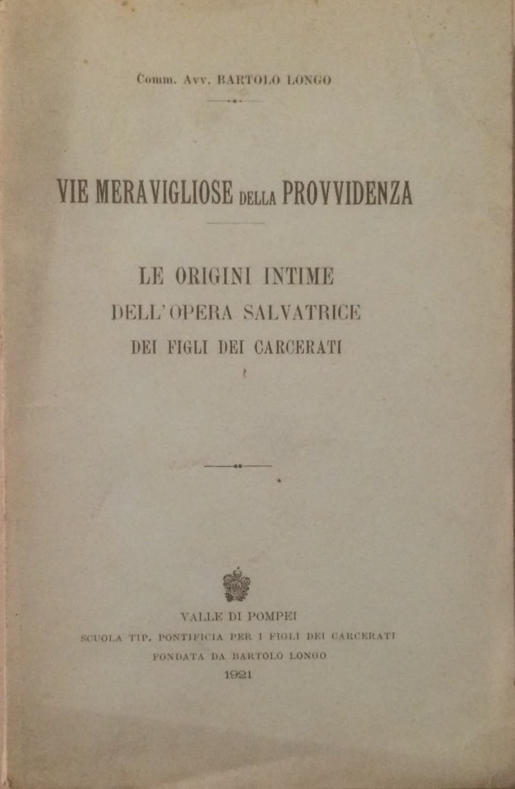 Bartolo Longo, Vie Meravigliose Della Provvidenza: Origini Dell'Opera Per I Figli Dei Carcerati (1921)