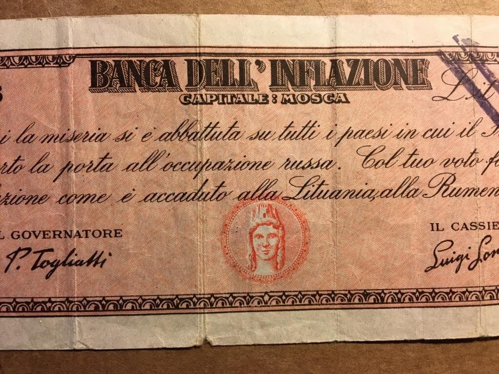 Assegno Satirico Di Propaganda Elettorale, Fronte Democratico Popolare, Togliatti E Longo, 1948