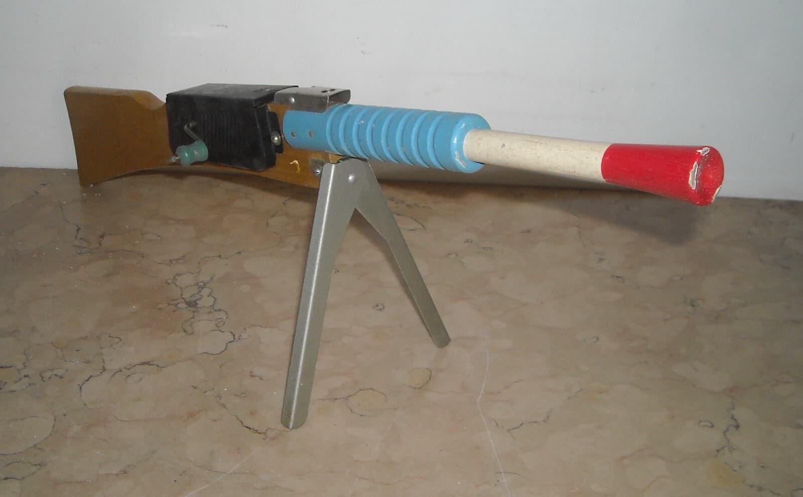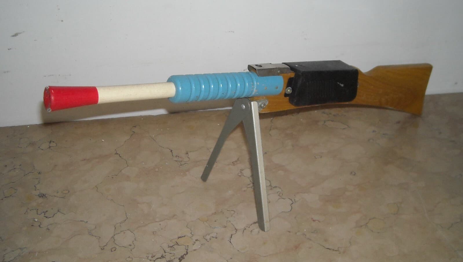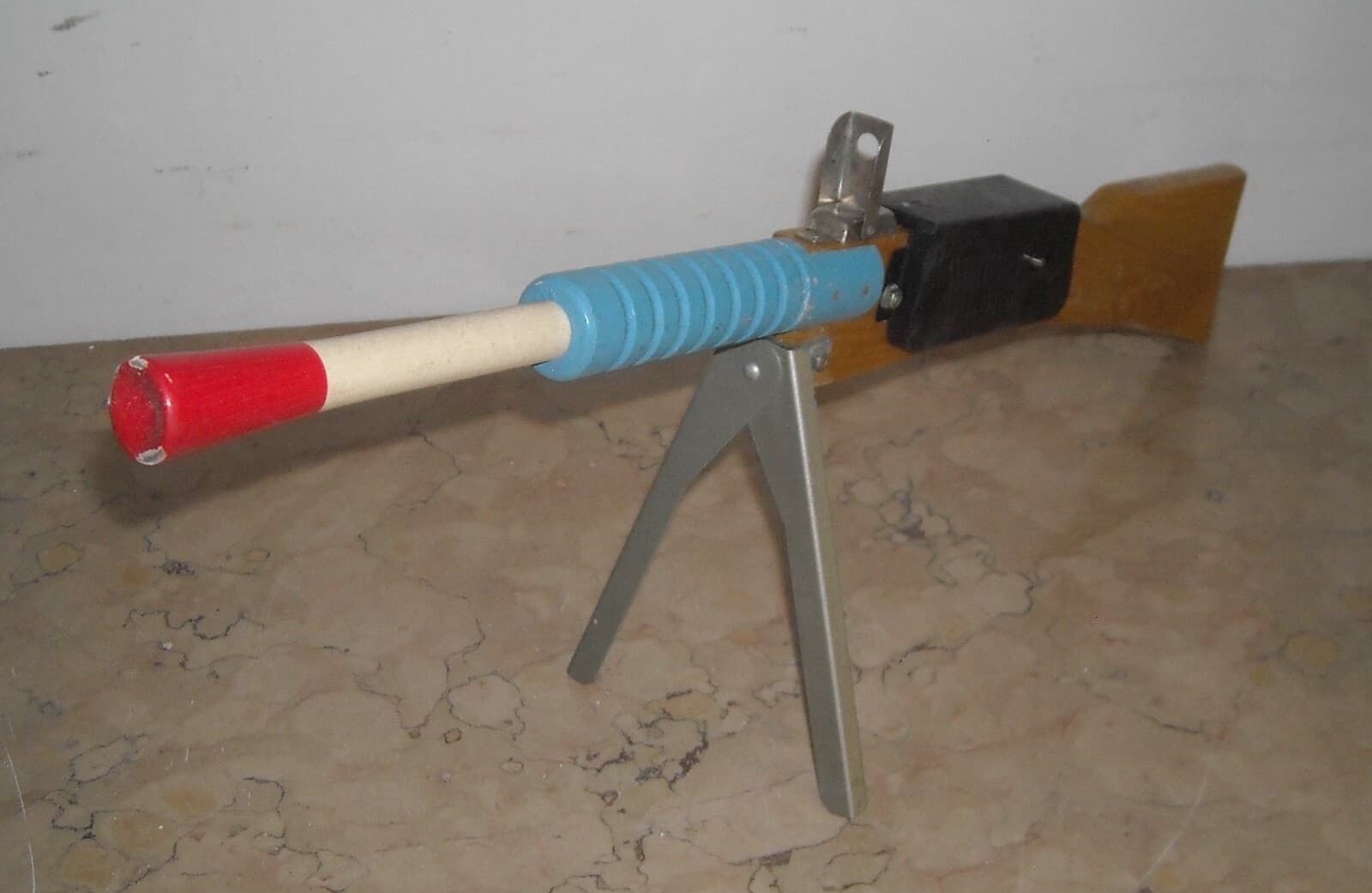 Fucile Giocattolo d'Epoca In Legno Policromo E Metallo