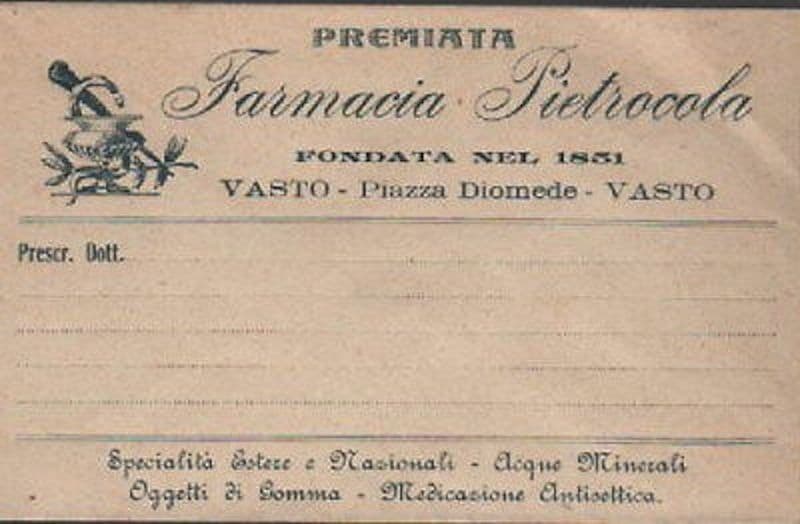 Bustina Farmacia Pietrocola Vasto 1851 Abruzzo Pubblicità Antica