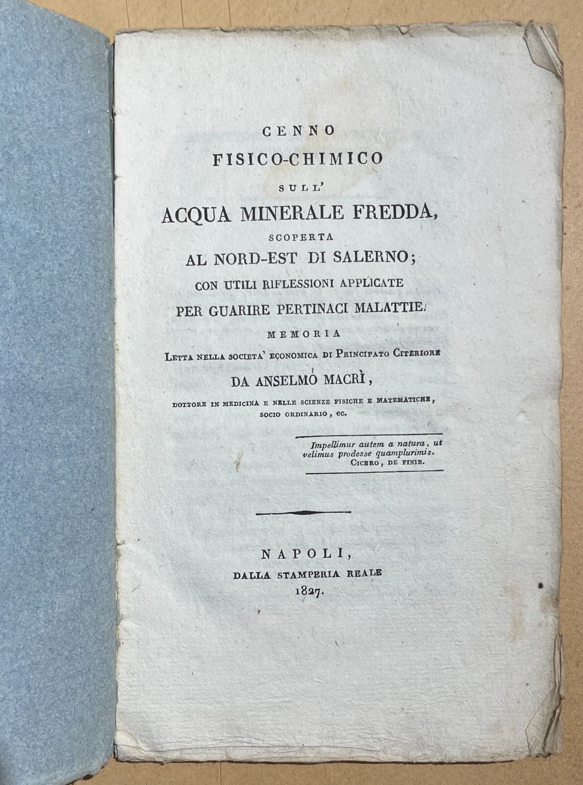 Medicina, Chimica E Acque Minerali Di Salerno, Anselmo Macrì, 1827