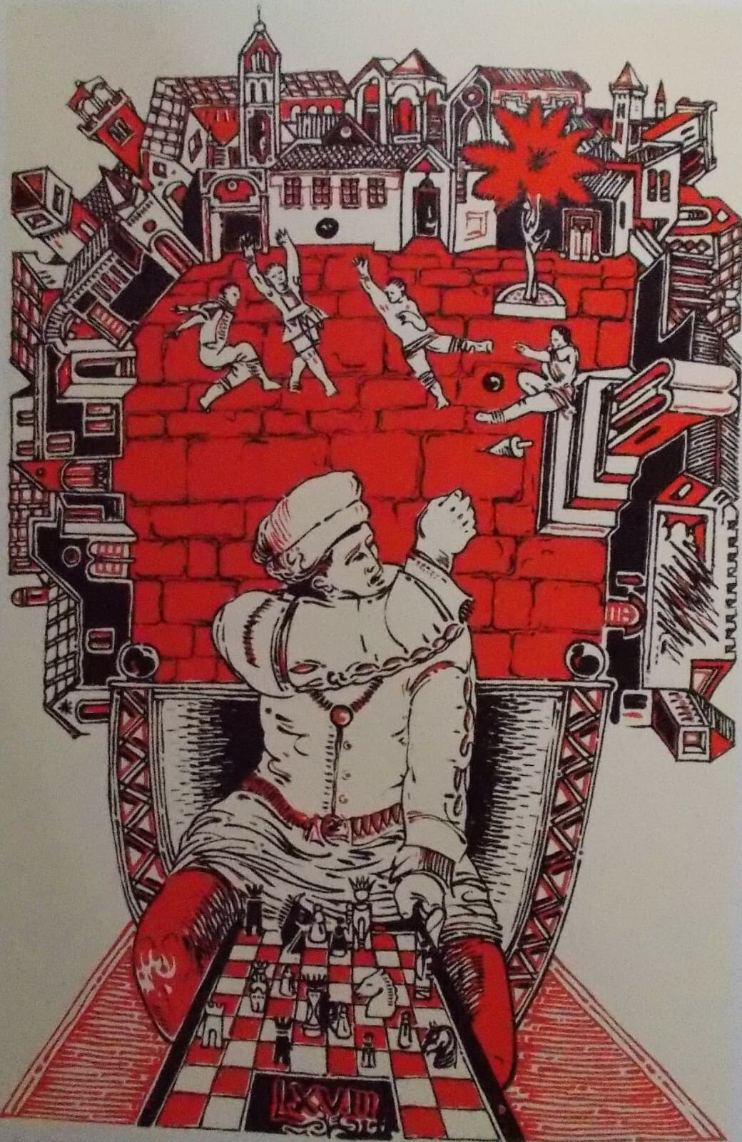Franco Giordano, Illustrazione Medievale Con Scacchi E Gioco Della Palla