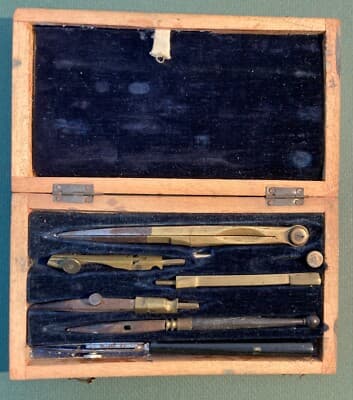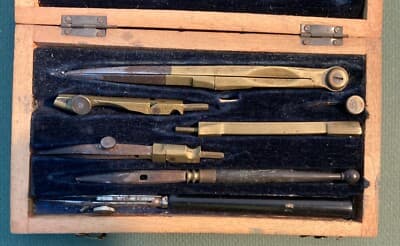 Antico Compasso Da Disegno Con Accessori In Astuccio Ligneo, 1915