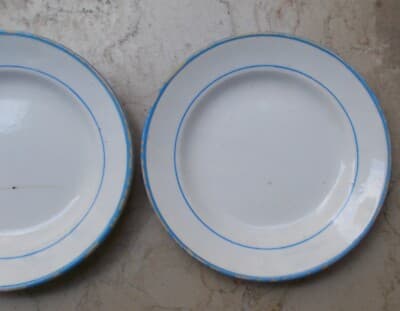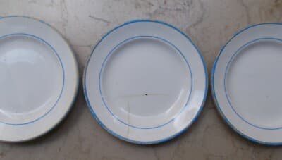Insieme Di Tre Piatti In Ceramica, Filettatura Blu, Vedova Besio E Figli