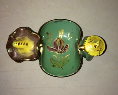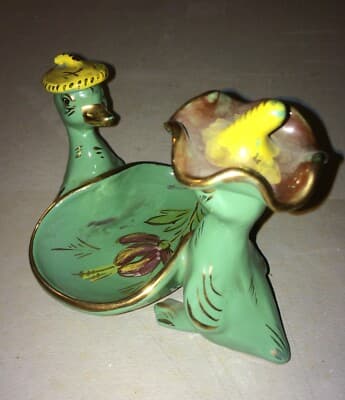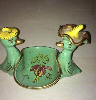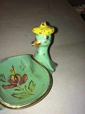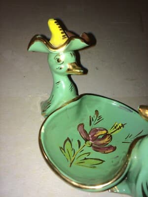 Soprammobile In Ceramica Con Figure Di Paperi E Cestino Svuotatasche