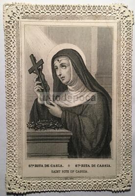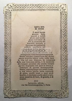 Antica Stampa Devozionale, Santa Rita, Santino Merlettato, Lamarche, Parigi