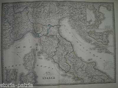 Antica Grande Mappa Delle Regioni d'Italia: Sicilia, Sardegna, Corsica E Territori Pre Unitari