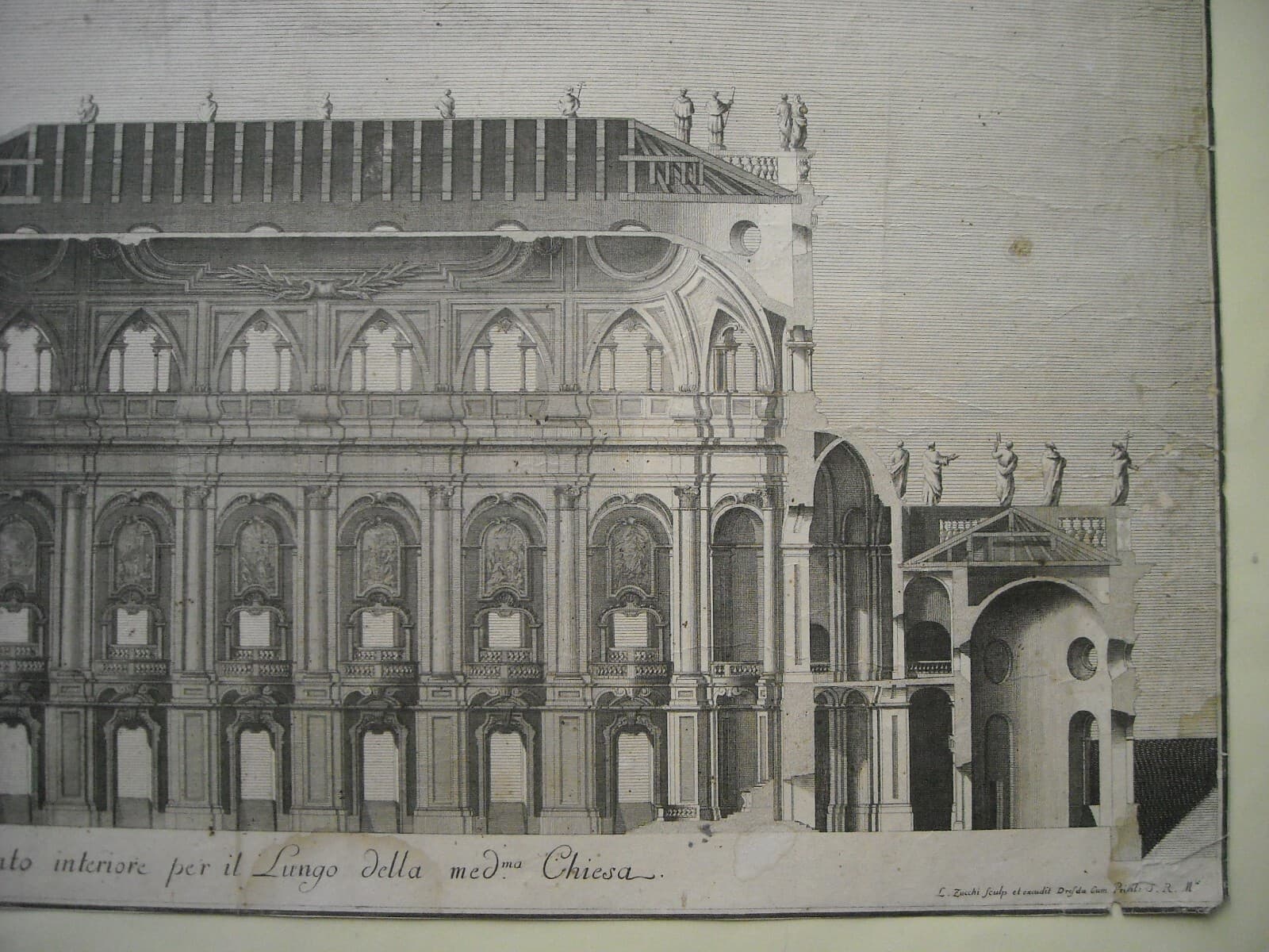 Architettura: Prospettive Della Katholische Hofkirche Di Dresda. Architetto Gaetano Chiaveri, Incisore Lorenzo Zucchi