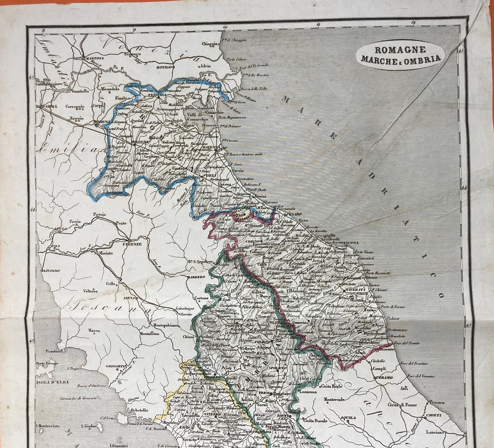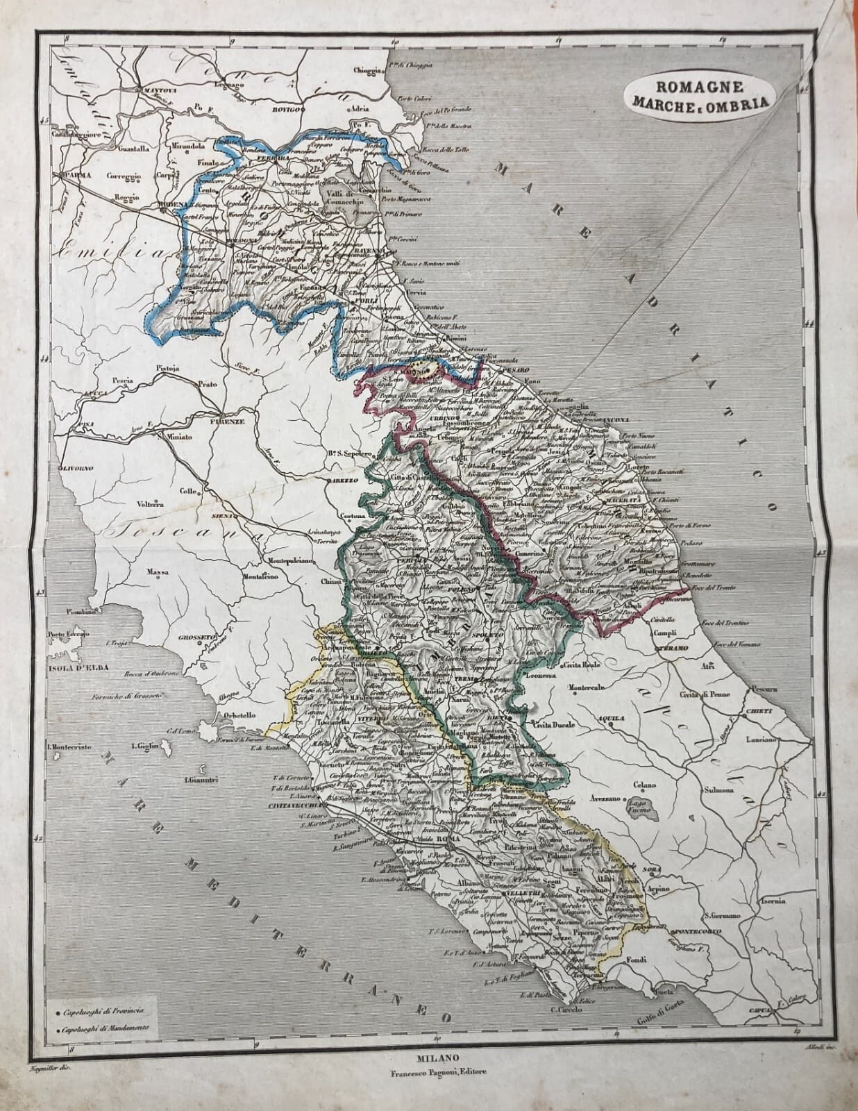 Antica Cartografia: Romagna, Marche, Umbria, Lazio. Allodi, Naymiller, Pagnoni, XIX Secolo