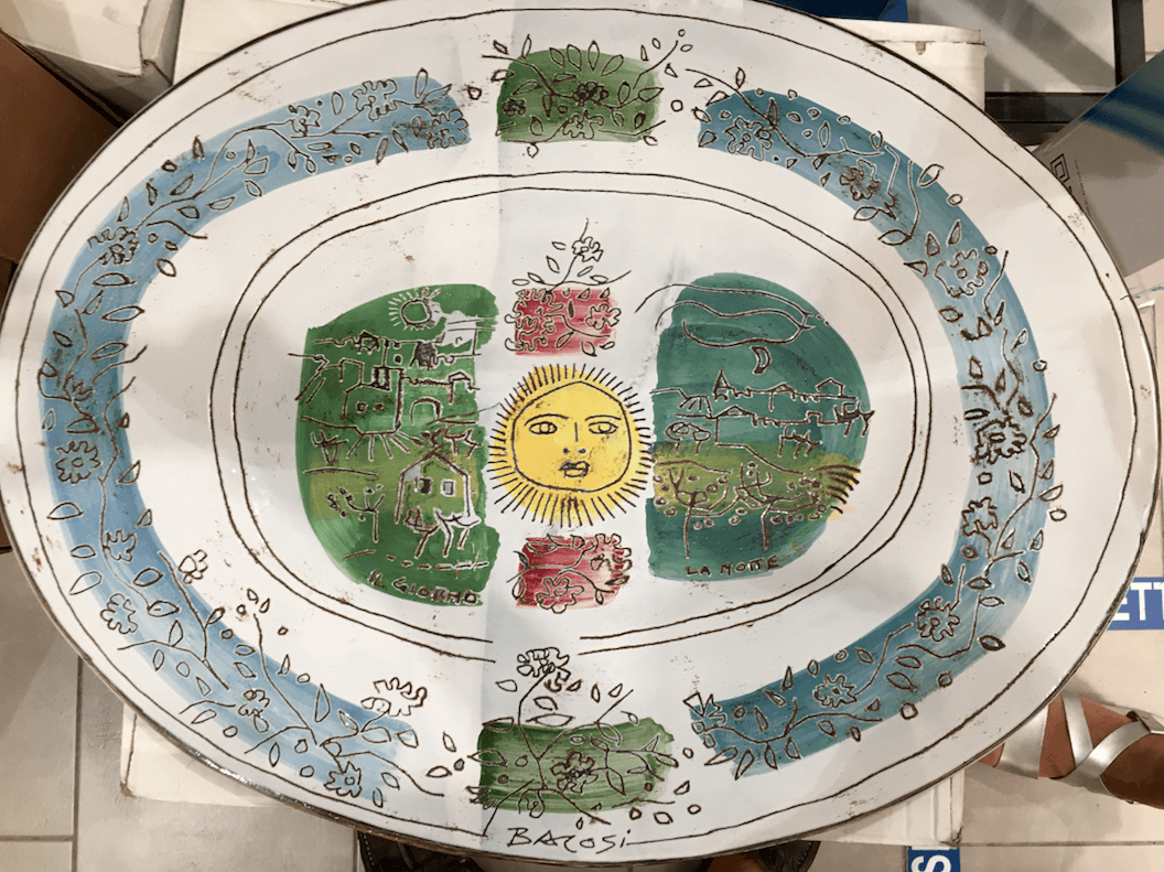 Manlio Bacosi: Allegoria Del Giorno E Della Notte. Grande Ceramica Ovalare, Anni '70