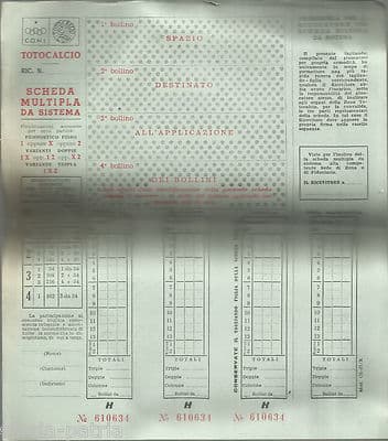 Sport Calcio Football Totocalcio C.O.N.I. Schedina Scheda Multipla Da Sistema
