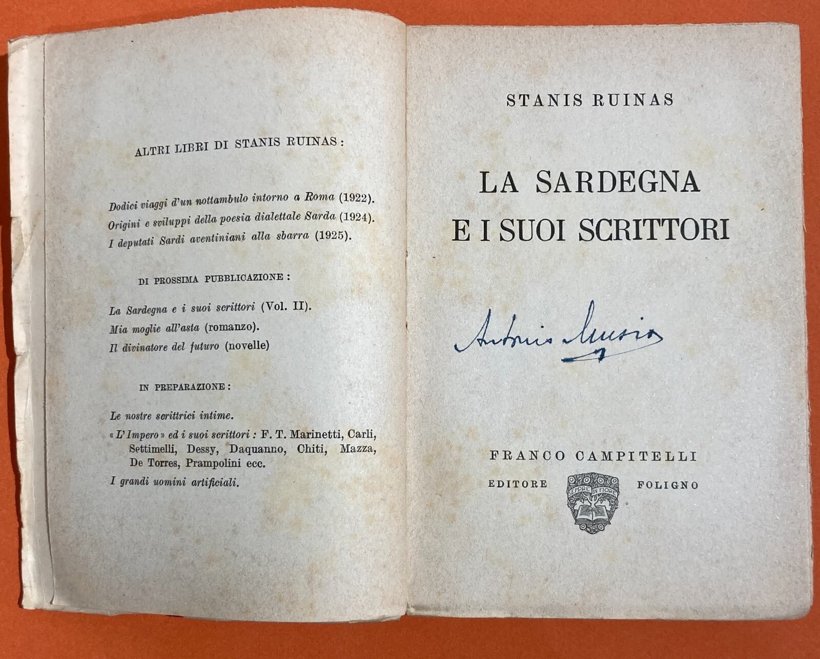Sardegna: Letteratura E Scrittori. Stanis Ruinas. Campitelli.