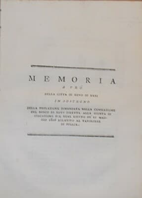 Memoria A Pro Della Città Di Ruvo Di Bari, 1806