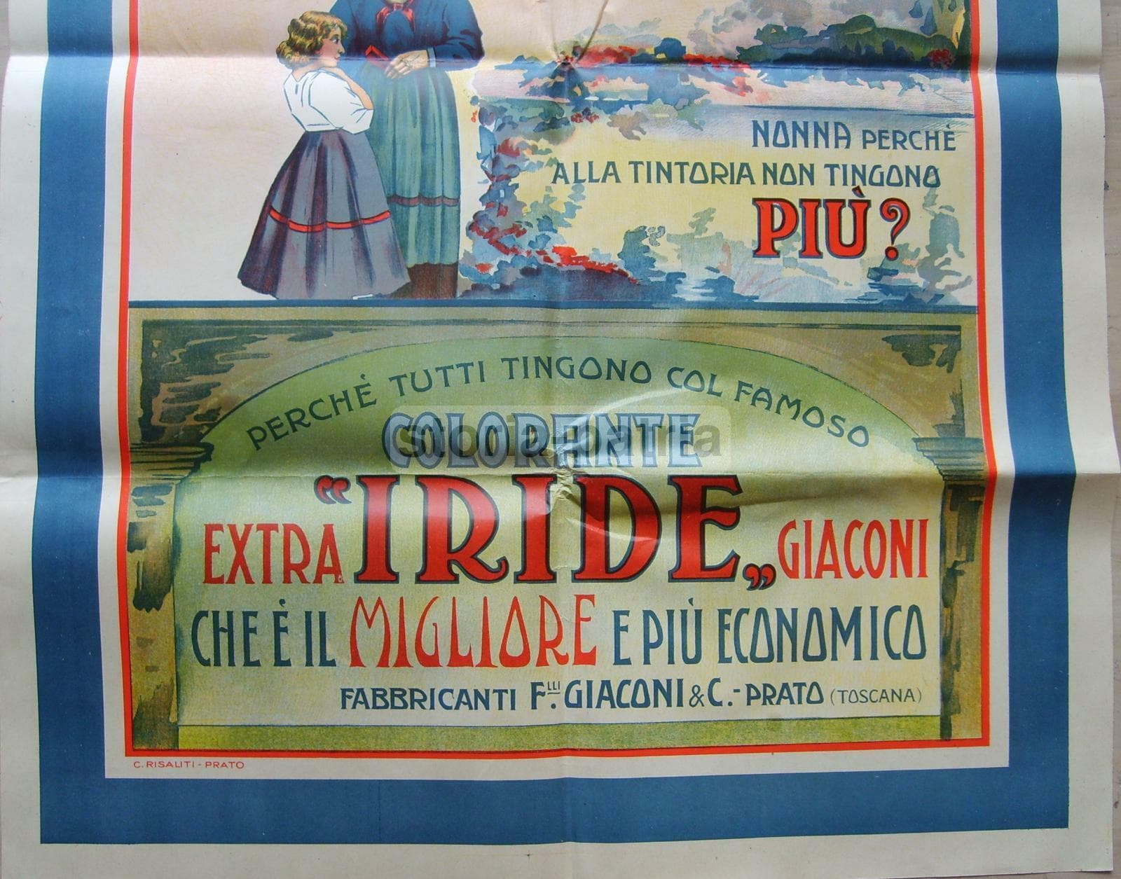 Toscana, Prato, Giaconi, Iride, Manifesto Pubblicitario Per Coloranti Tessili