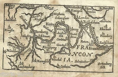 Franconia: Antica Mappa Cartografica Della Germania Incisione All'Acquaforte