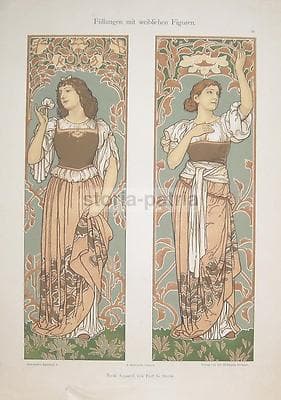 Arte: Arti Decorative Del '900. Decorazioni Liberty. Artista Sturm, Hoffmann. Figure
