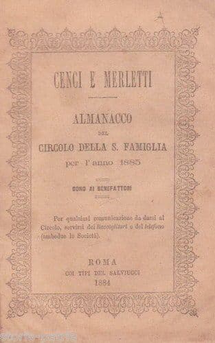 Almanacco Del Circolo Della Santa Famiglia, Roma 1885
