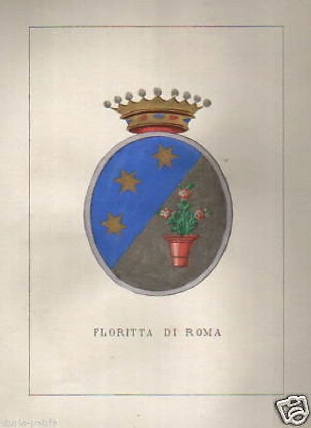 Araldica Floritta, Roma, Lazio. Litografia Originale, 1870 1880