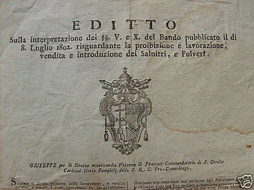 Editto Sui Salnitri E Polveri, Stato Della Chiesa, Marche, 1803
