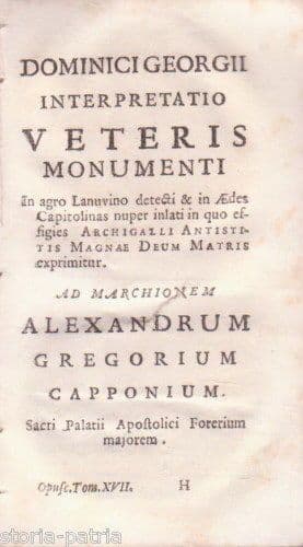 Interpretatio Veteris Monumenti In Agro Lanuvino Detecti, Domenico Giorgi, 1737