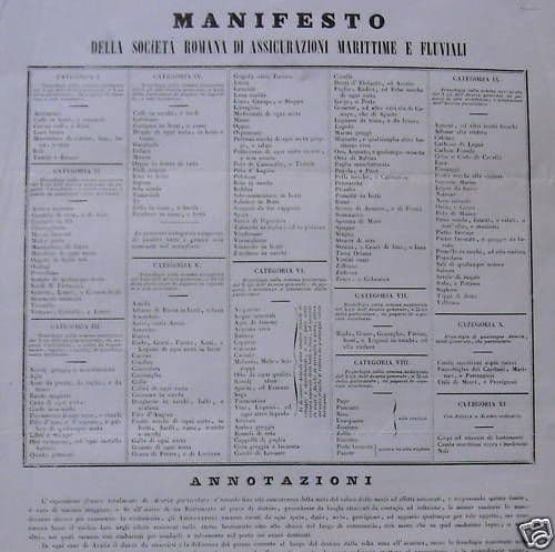 Manifesto Assicurazioni Marittime E Fluviali Roma 1850 Originale