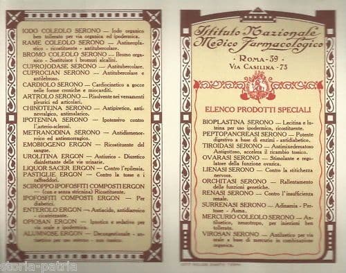 Calendarietto Farmacia Serono 1922, Roma: Pubblicità Farmaceutica