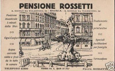 Pensione Rossetti Roma Biglietto Pubblicitario Vintage Inizio '900