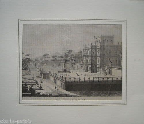 Antica Stampa Villa Pamfili Doria Roma Giardino Palazzo 1800
