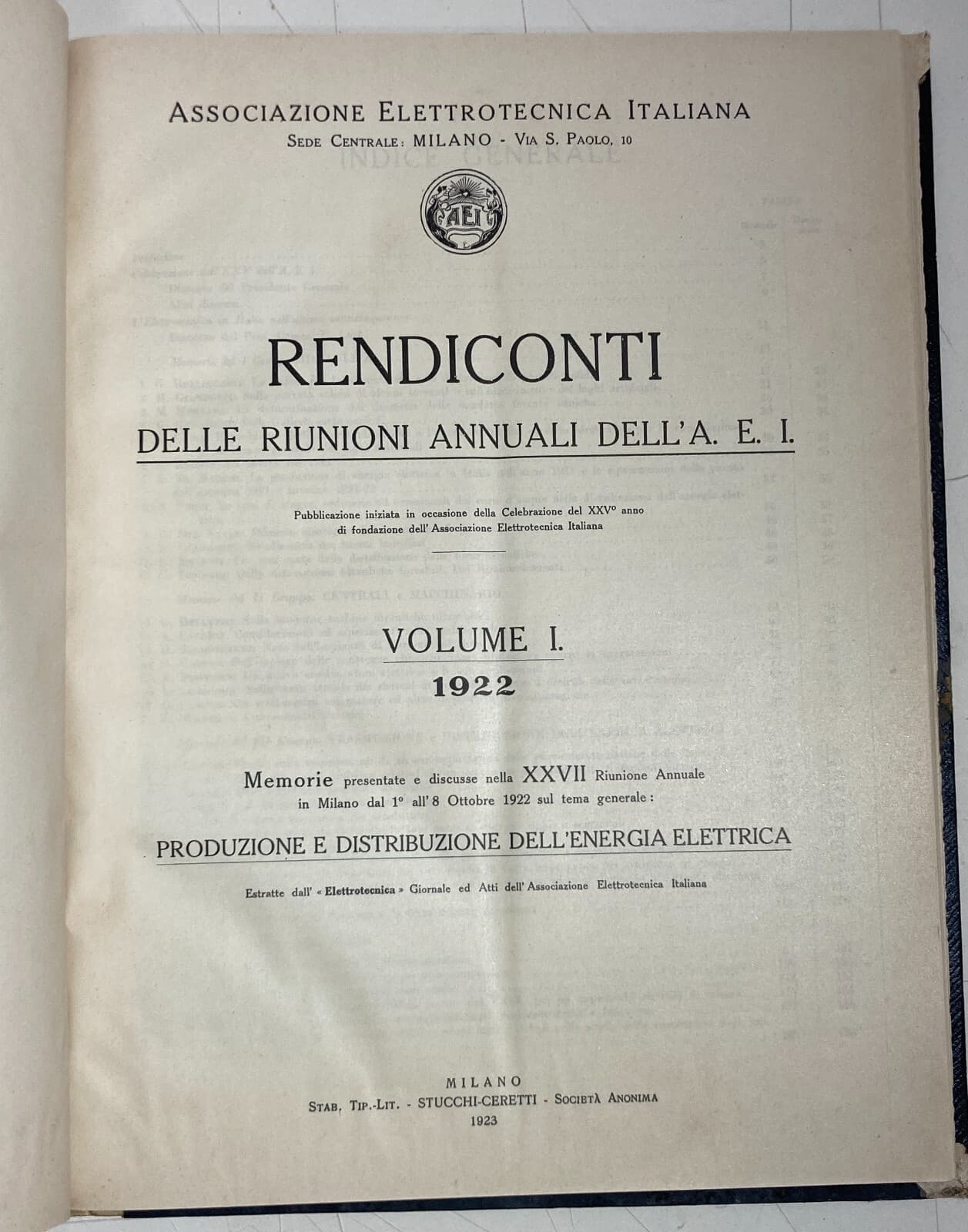 Ingegneria, Elettricità, Associazione Elettrotecnica Italiana: Rendiconto Annuale, 1922