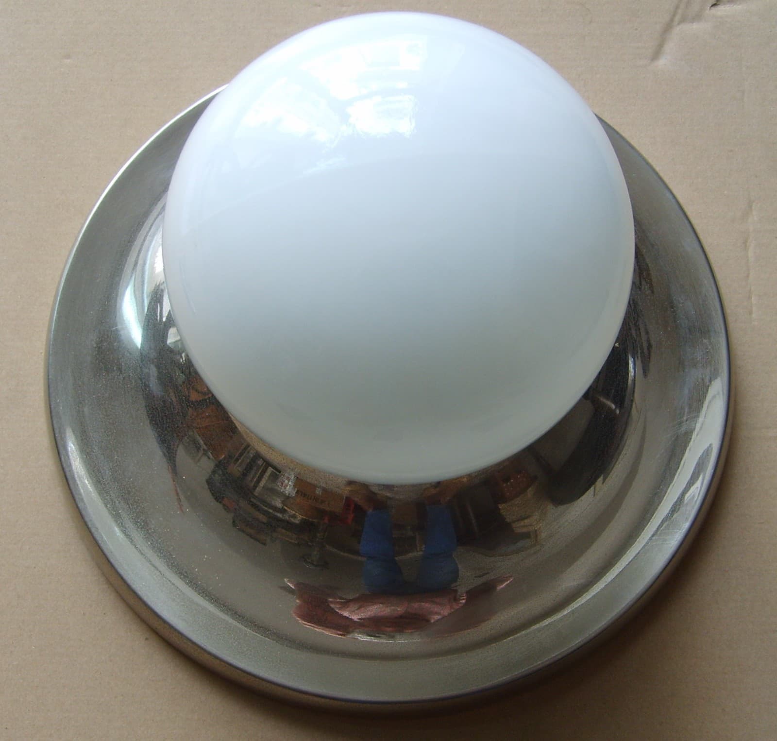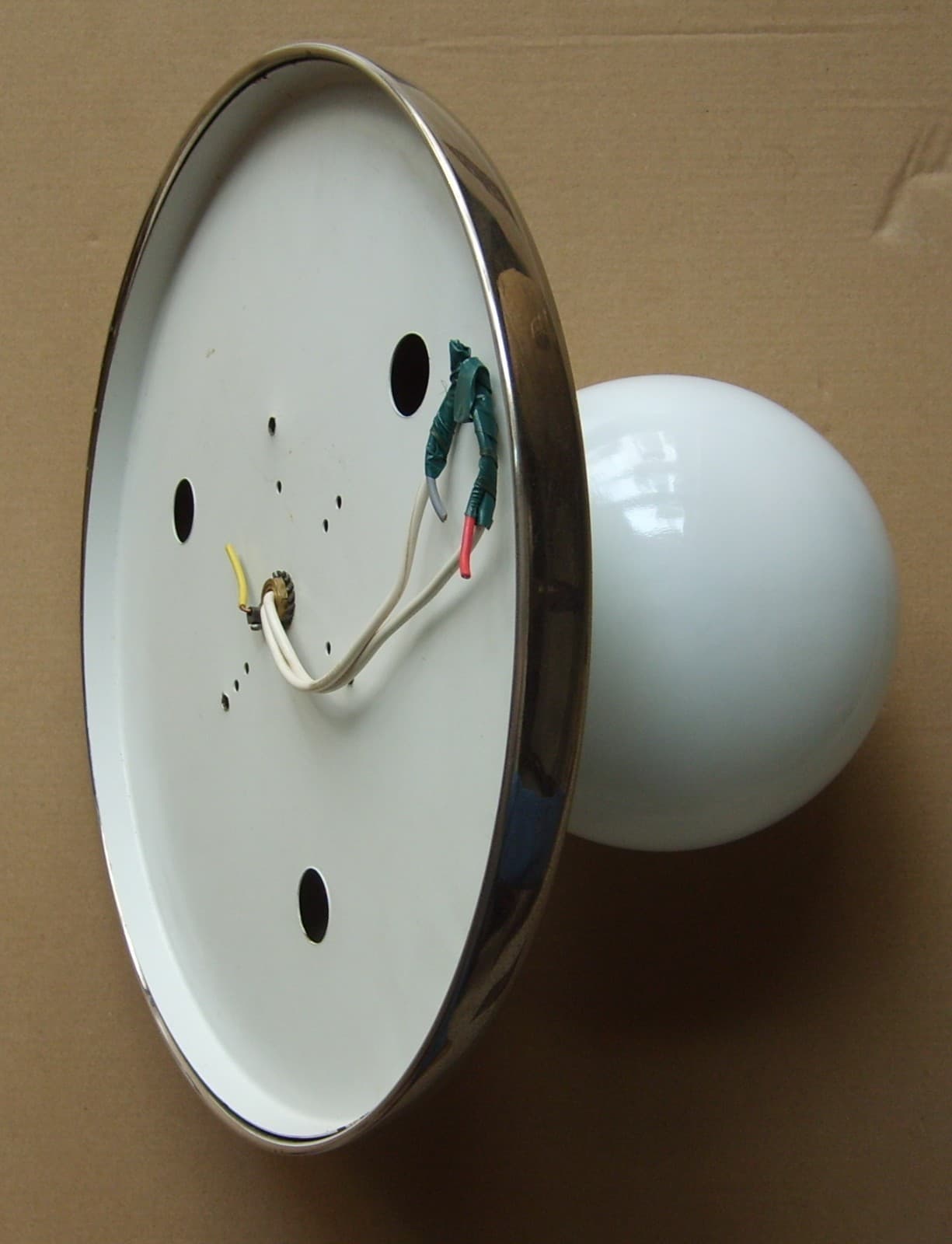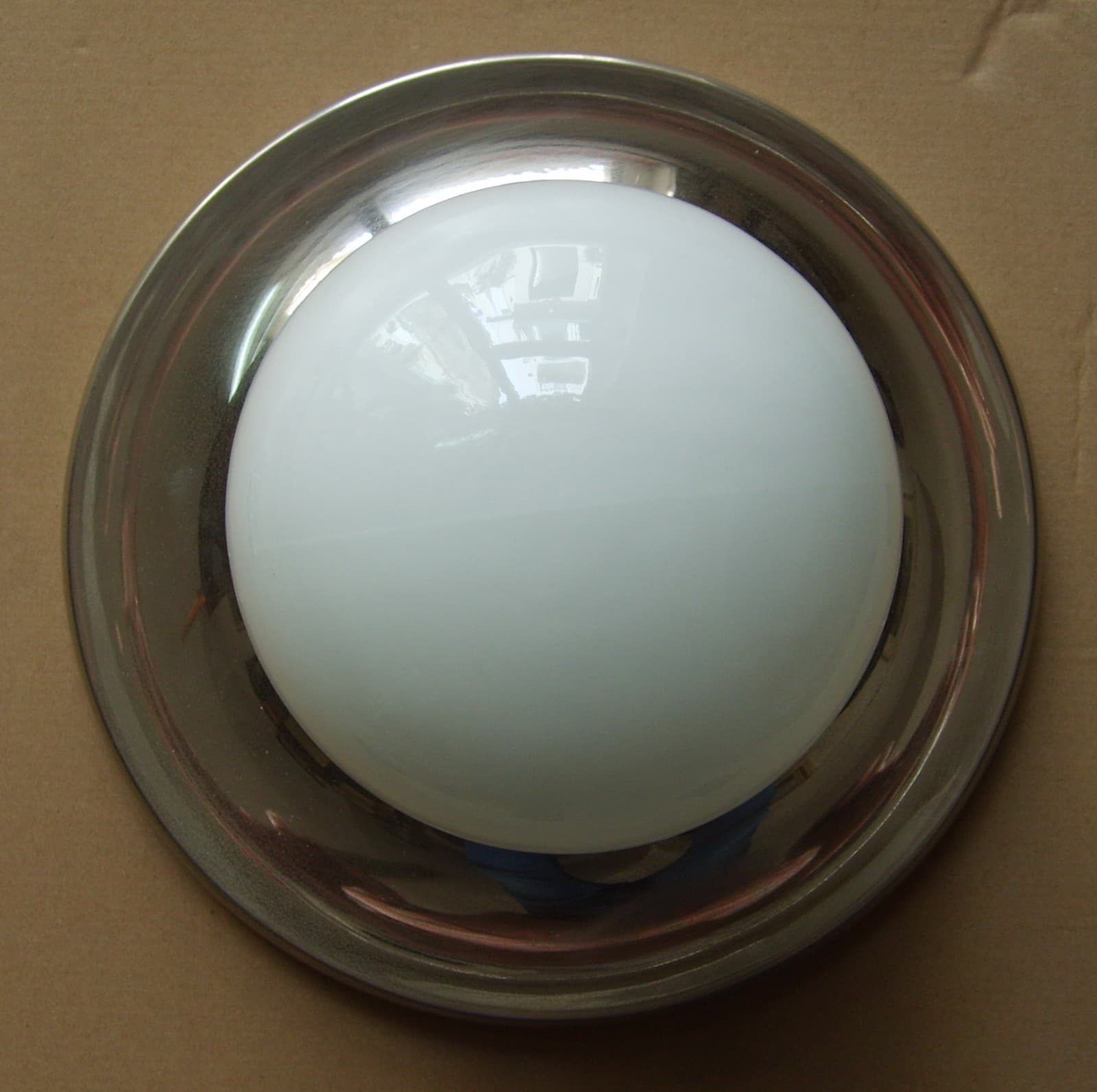 Lampada Plafoniera In Vetro Opalescente E Metallo Cromato, Anni '50