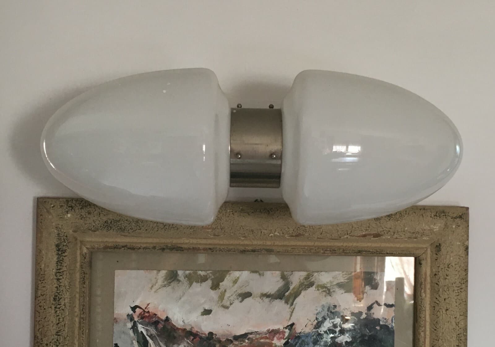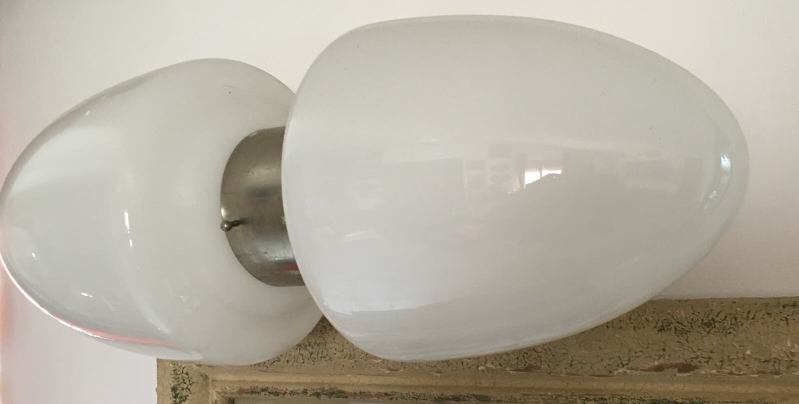 Lampada Da Parete Di Design In Vetro Lattimo E Metallo Cromato, Anni '70