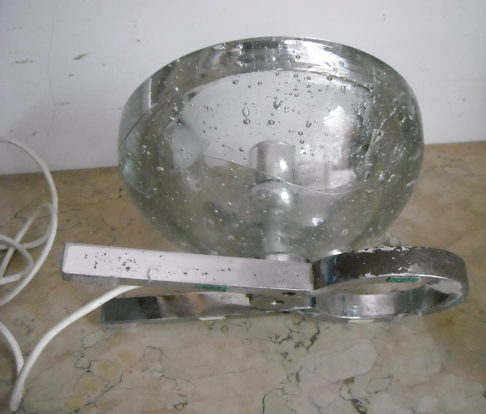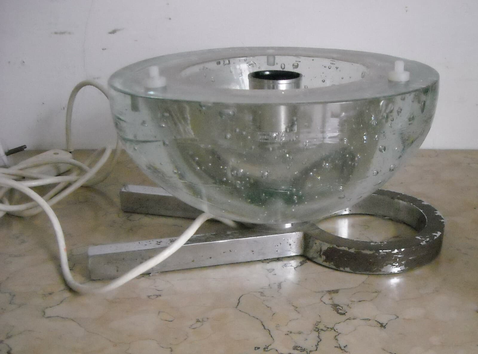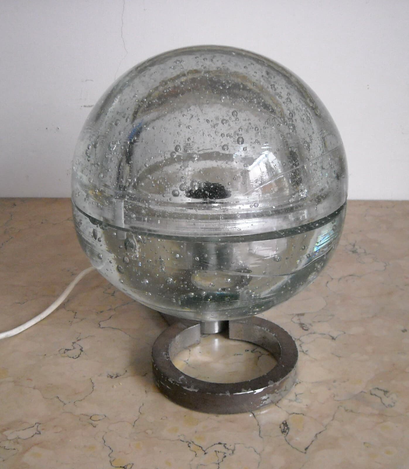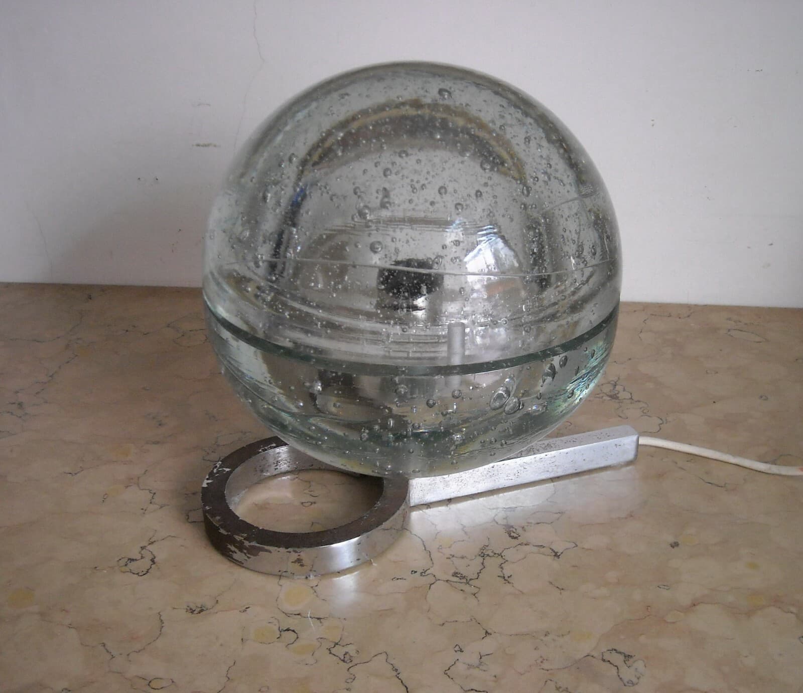 Lampada Da Tavolo In Vetro Massiccio Sferico Design Anni '70