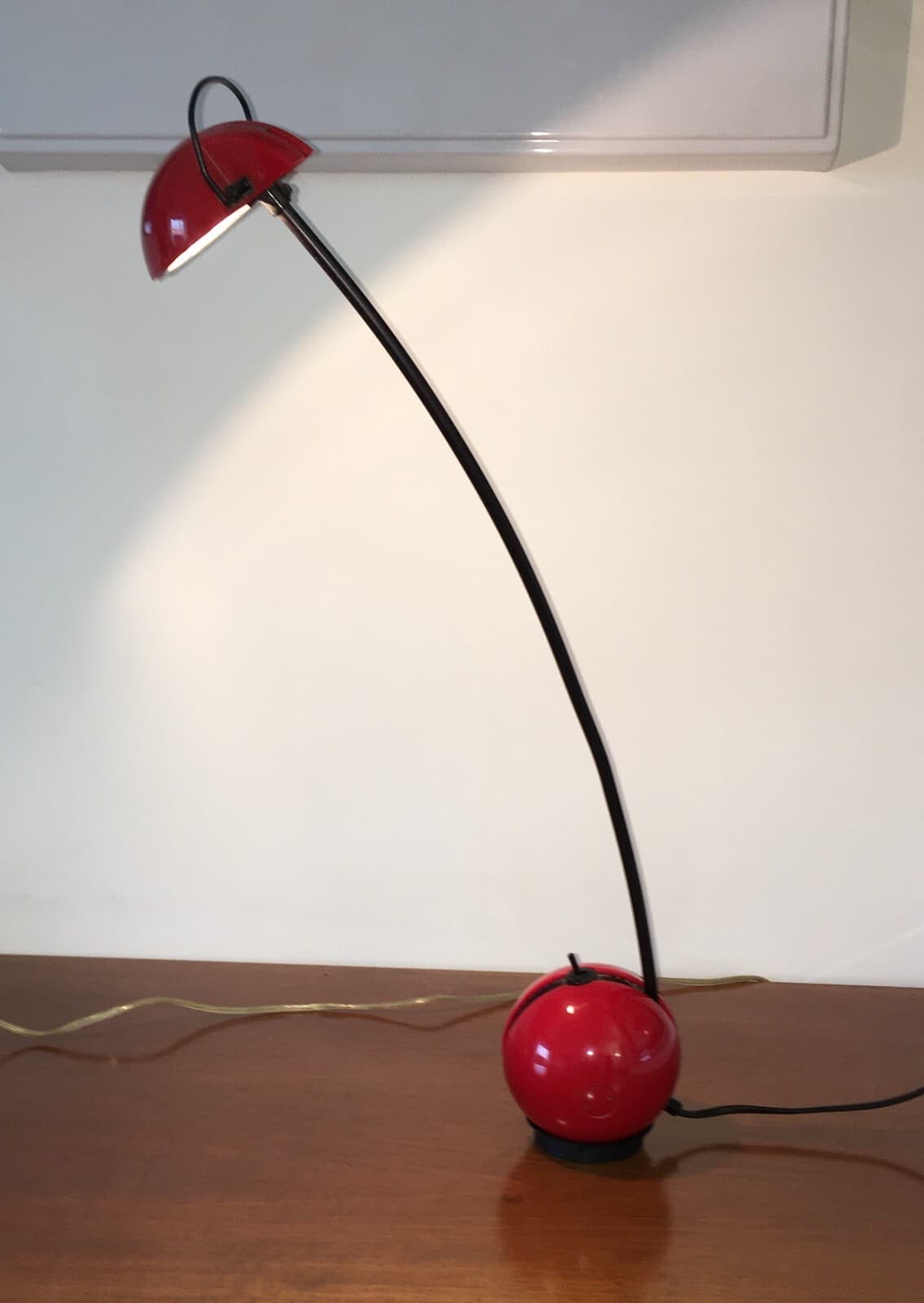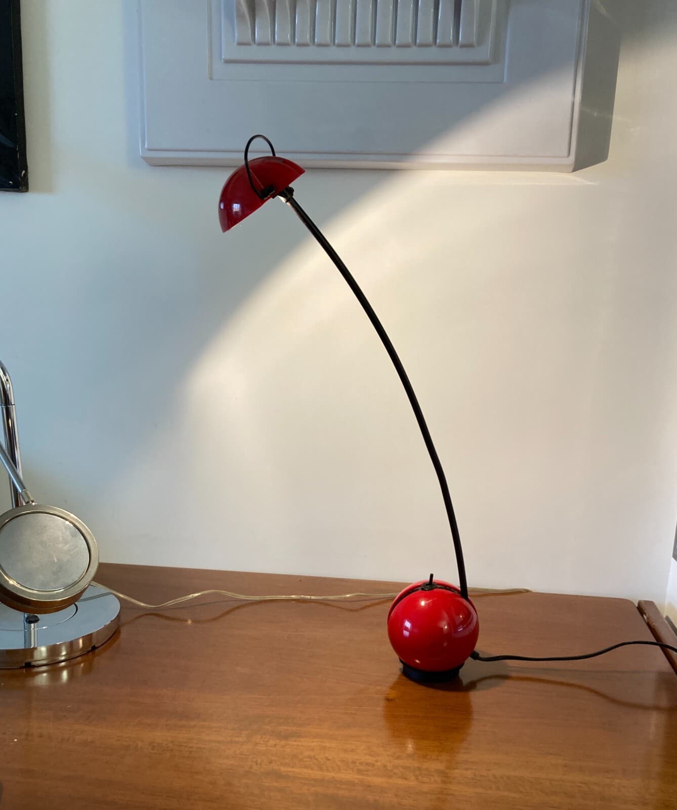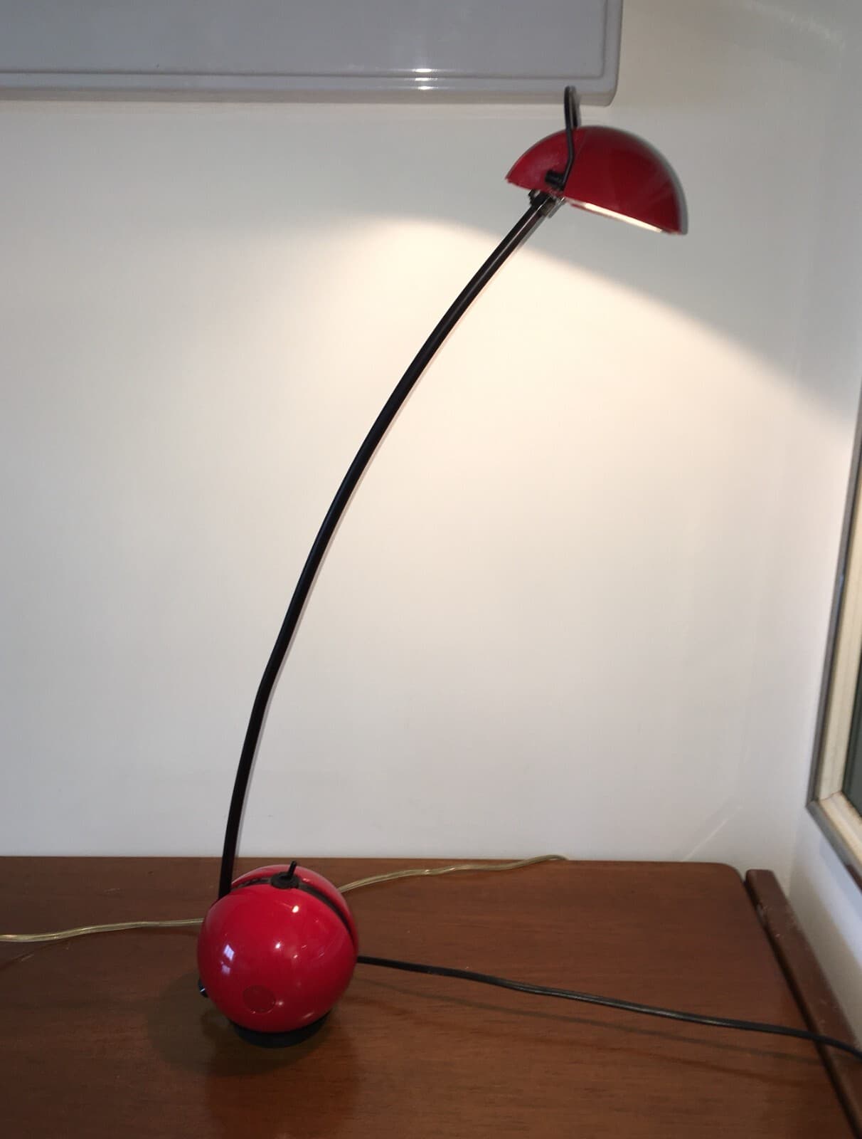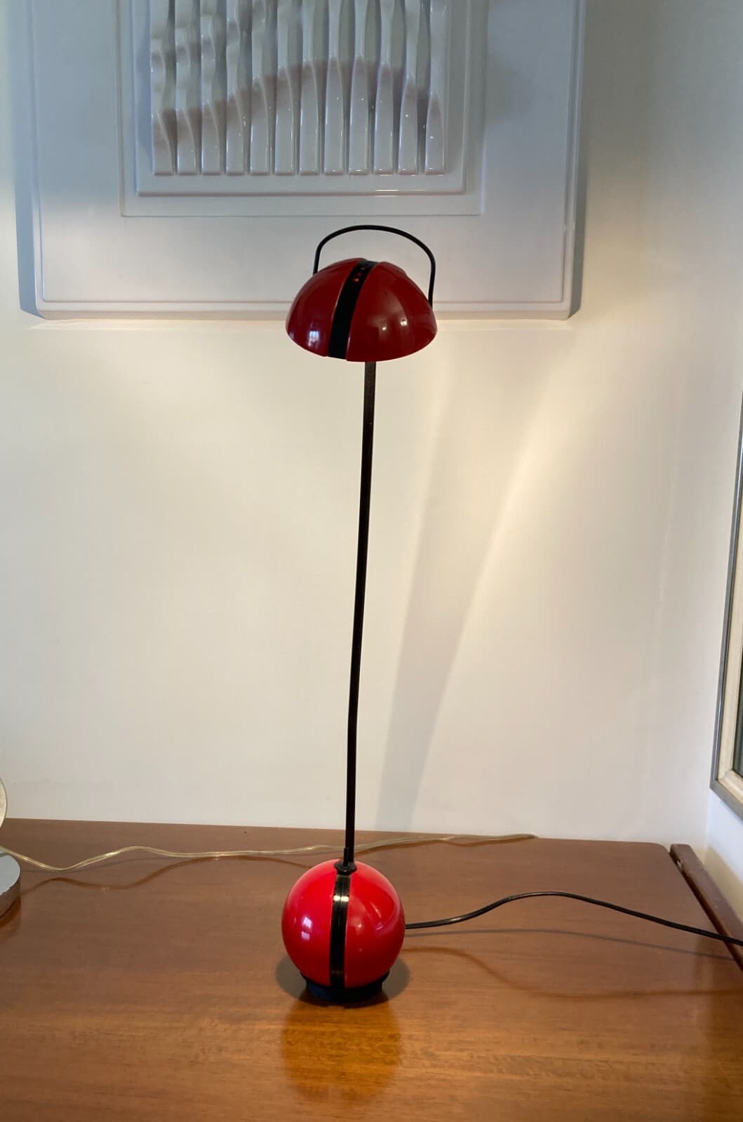 Lampada Da Tavolo Stilizzata Con Coppa Globulare Rossa, Design Italiano Anni '70