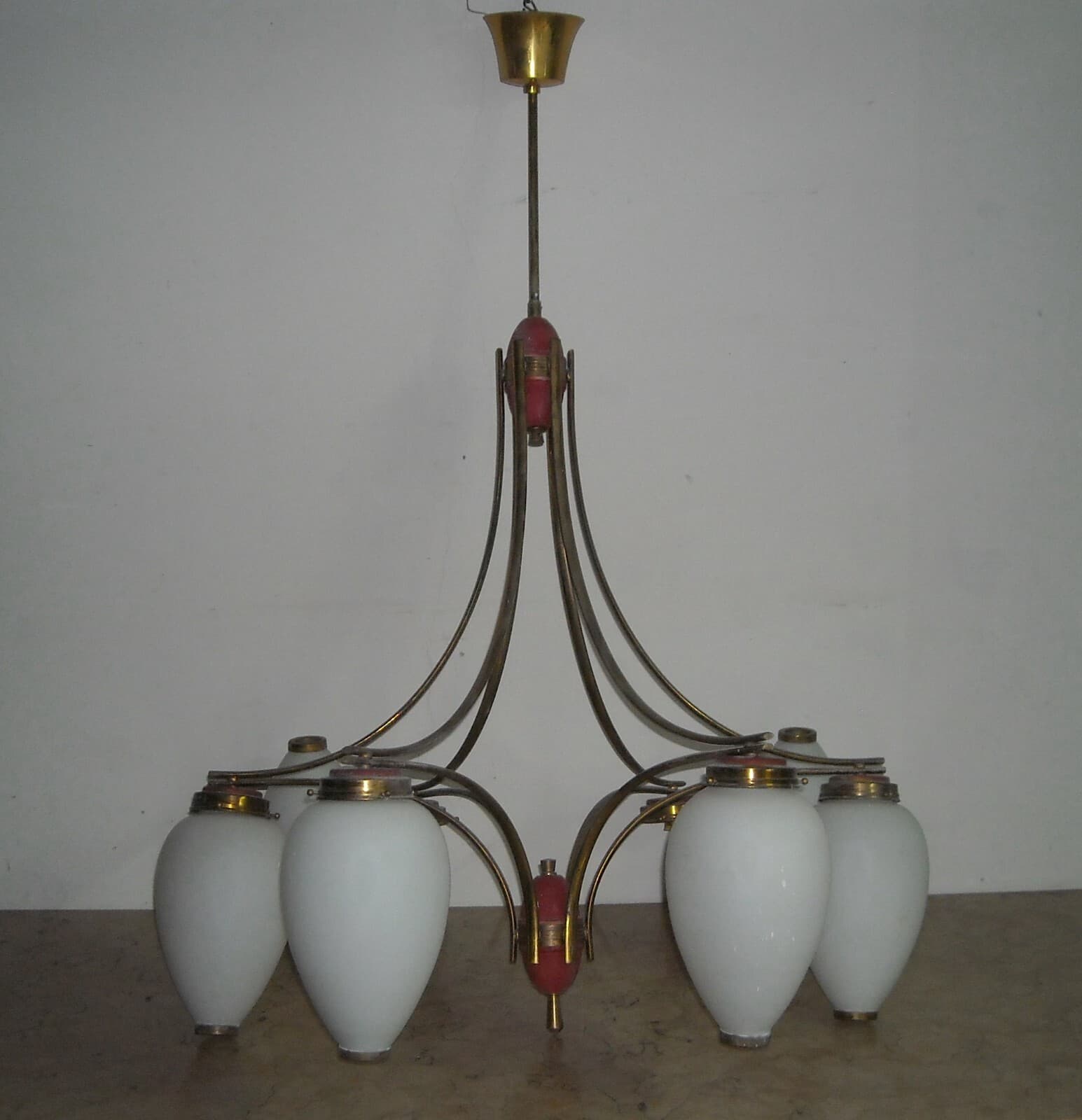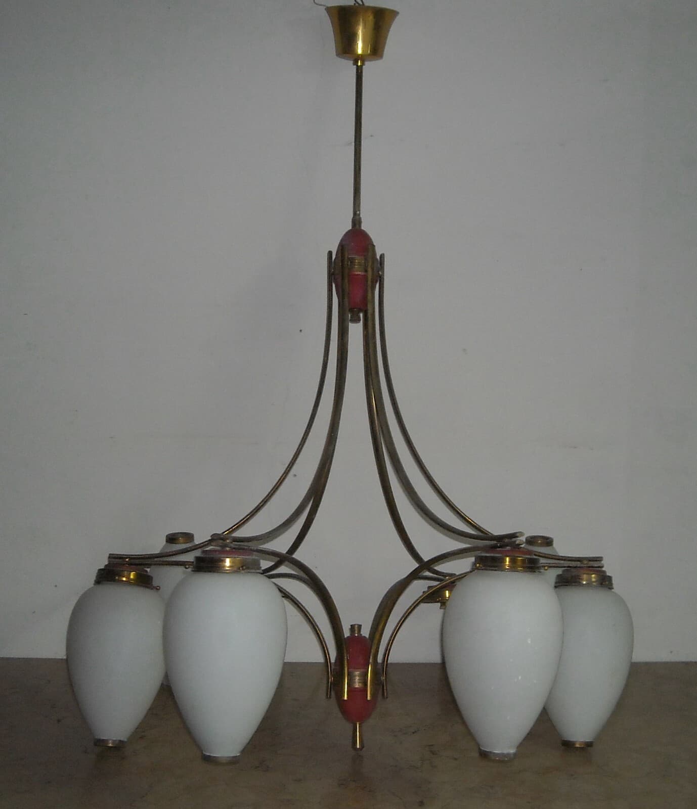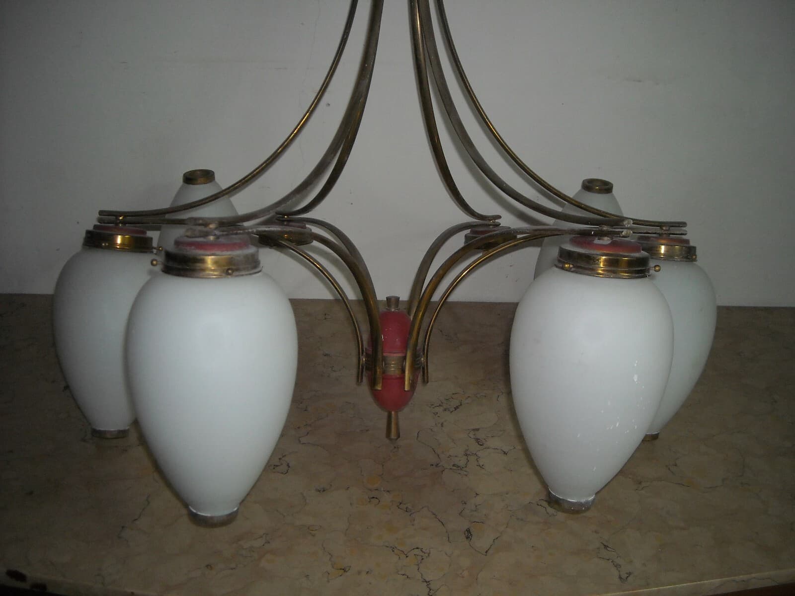 Design Modernariato, Inusuale Lampadario Decorativo Con Coppe In Vetro d'Epoca