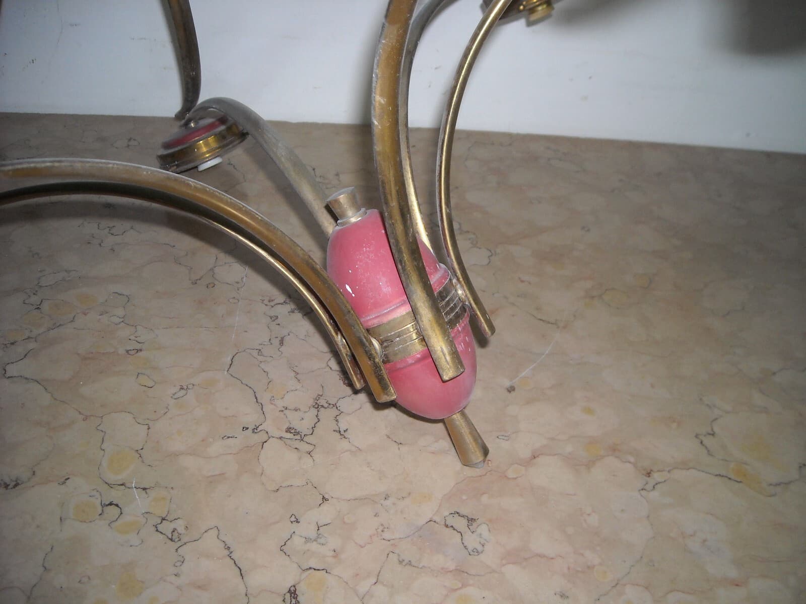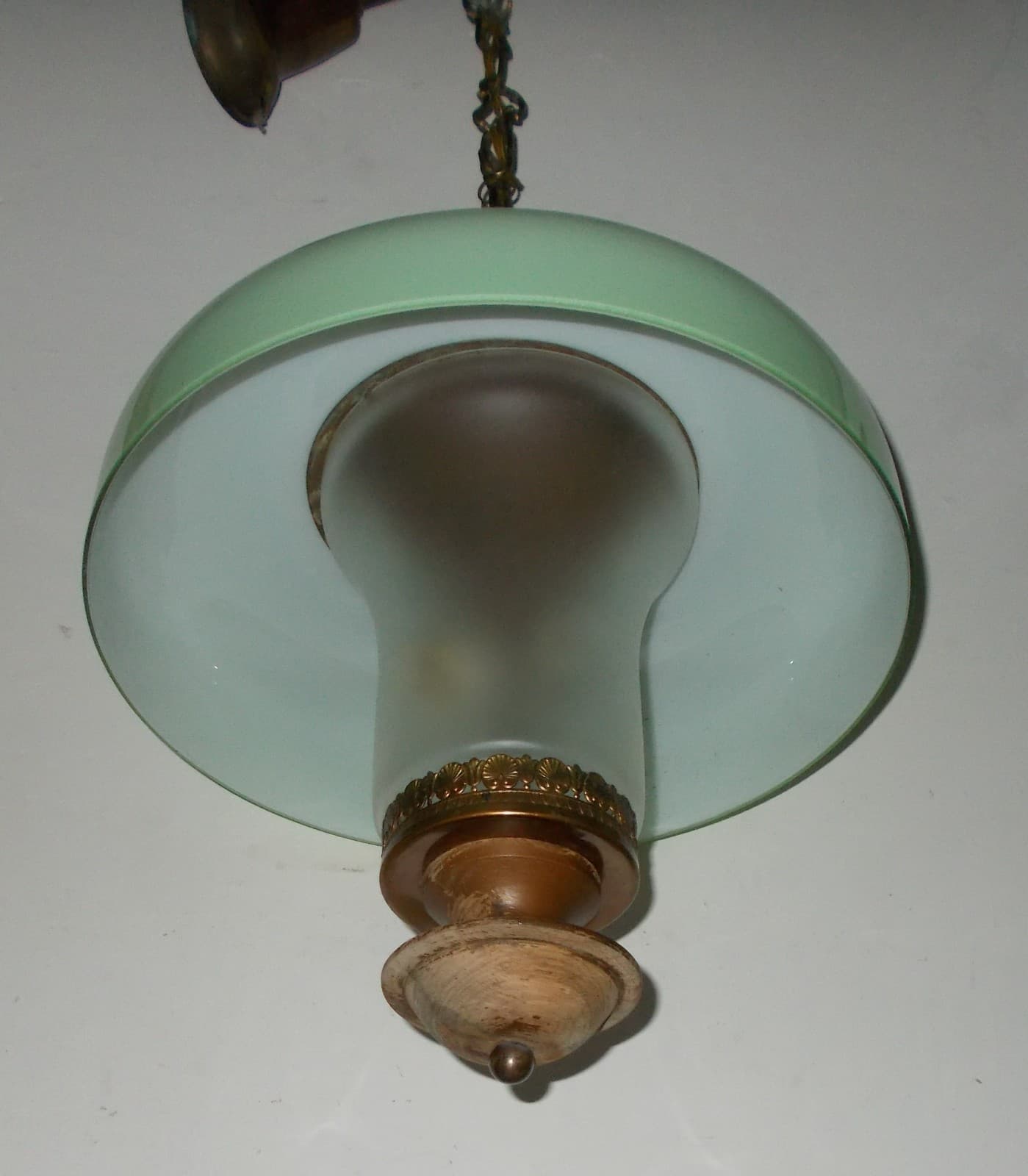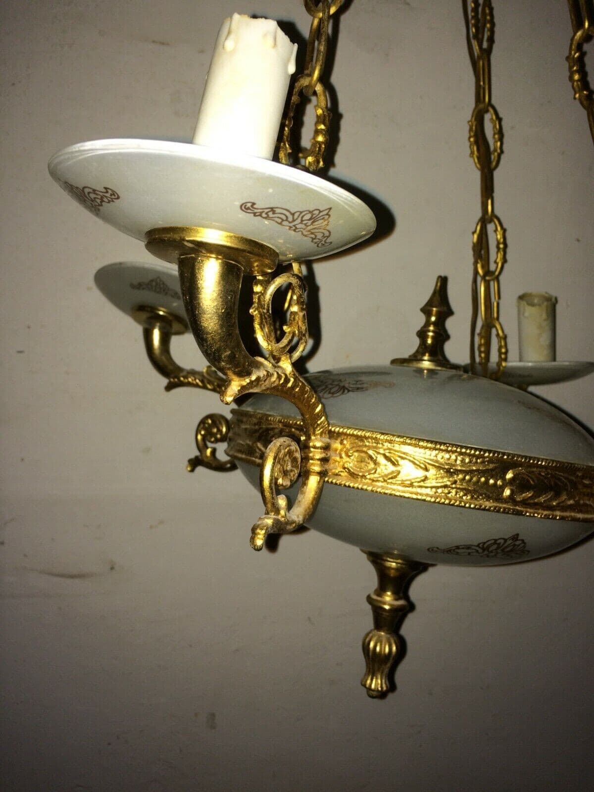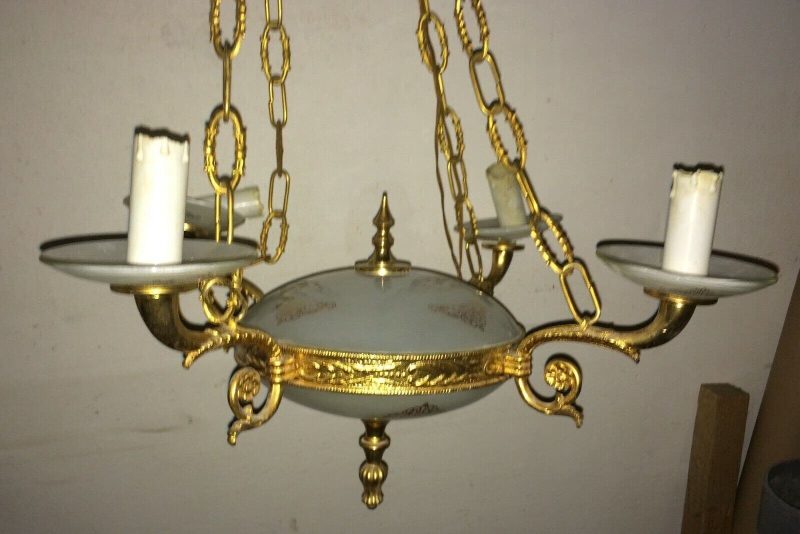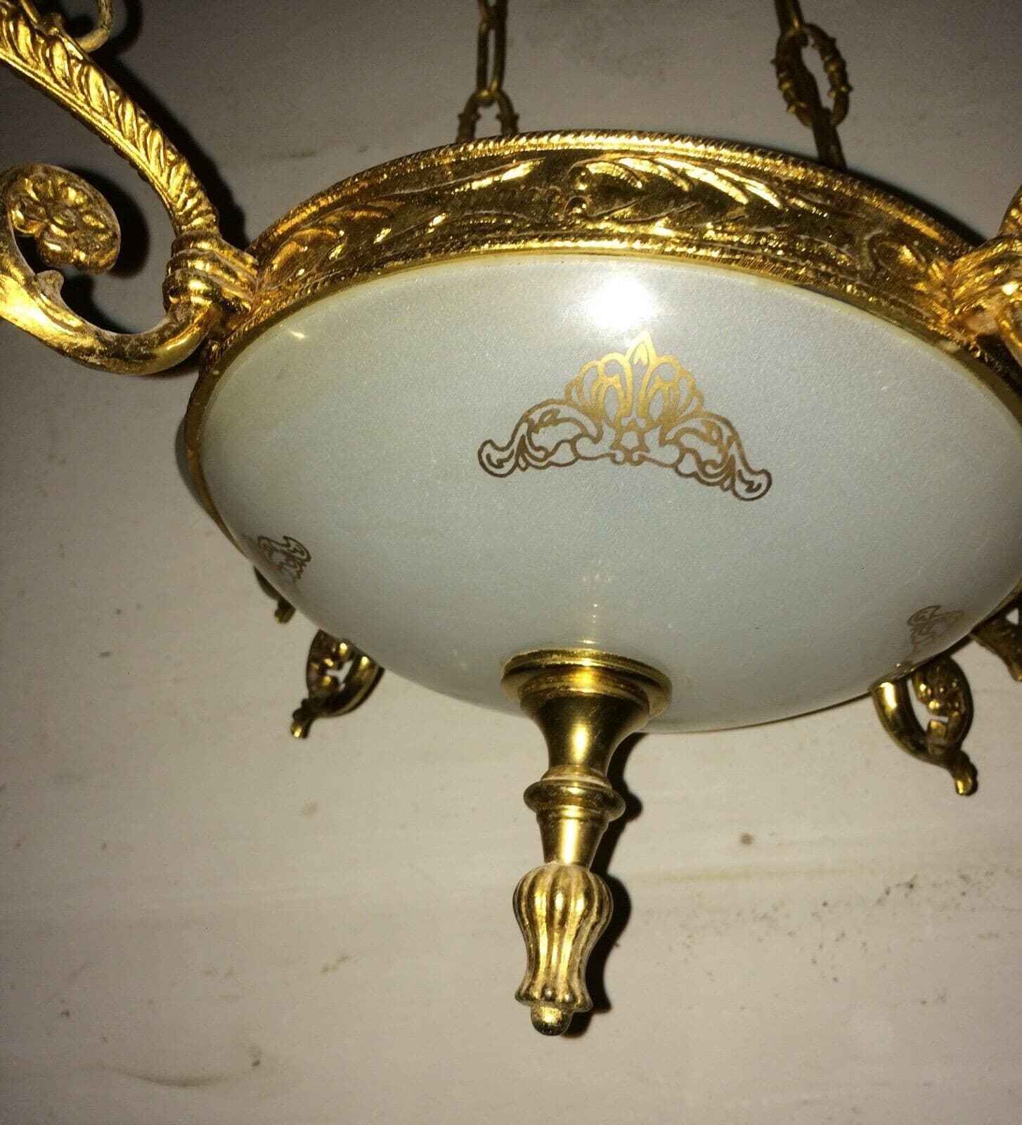 Lampadario Decorativo In Metallo Dorato E Vetro Opalescente
