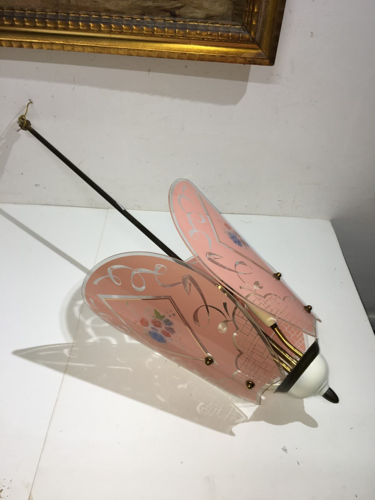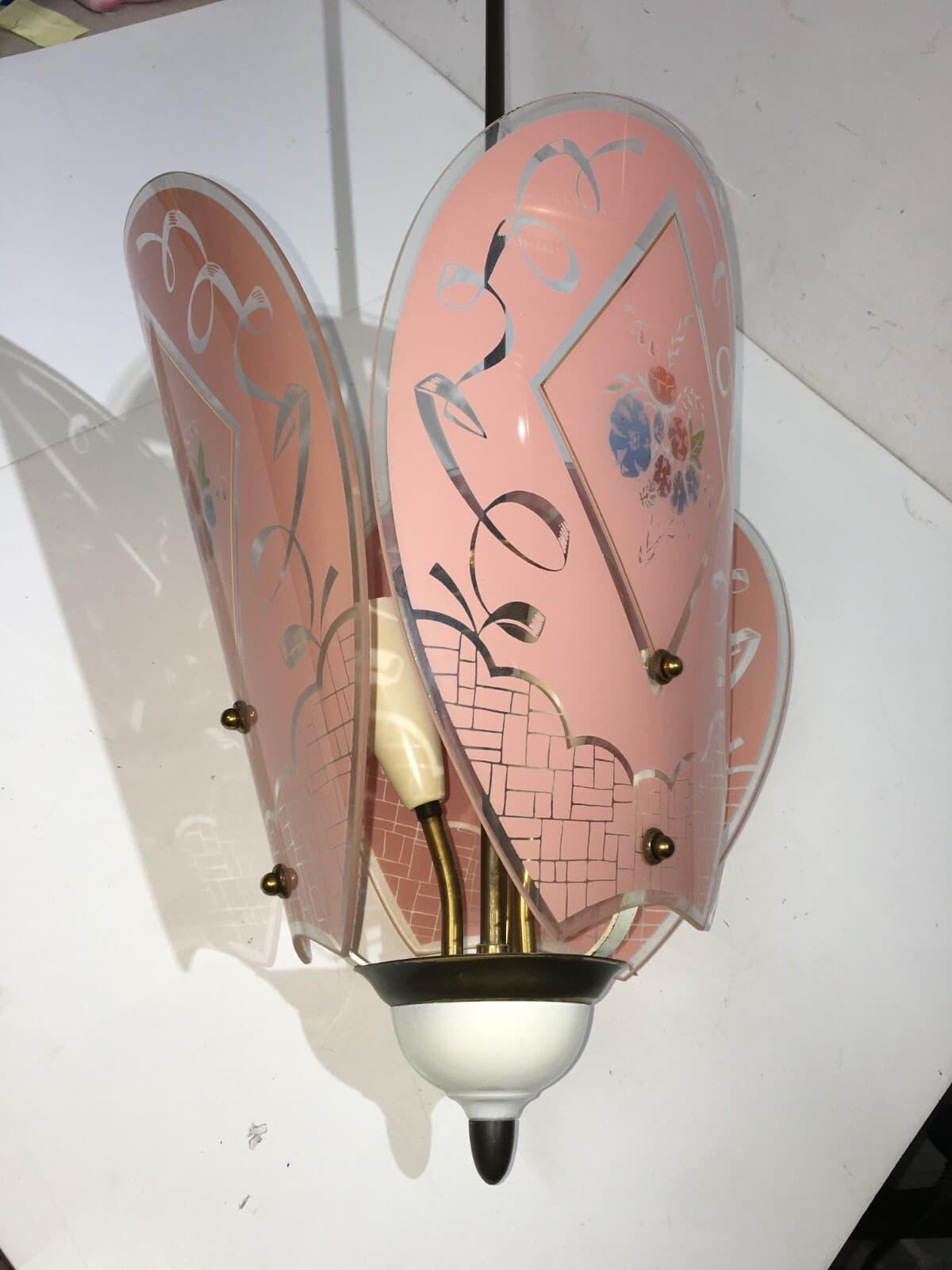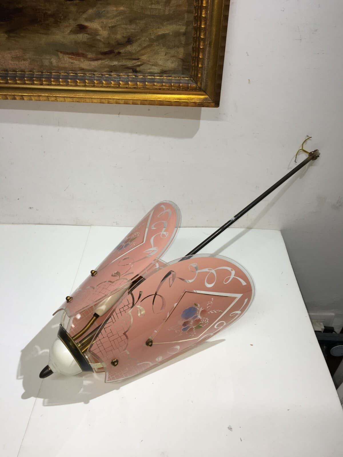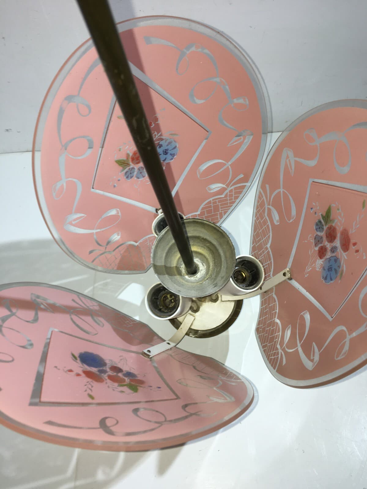 Vetri d'Epoca: Antica Coppa Per Lampade O Lampadari Con Decoro Floreale