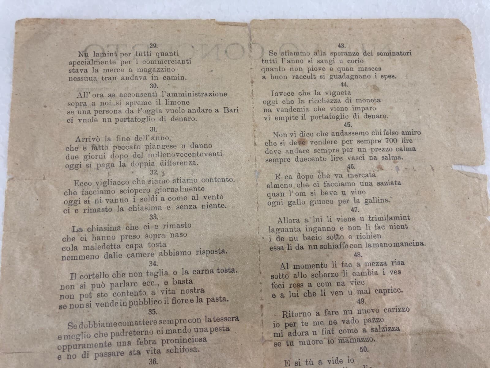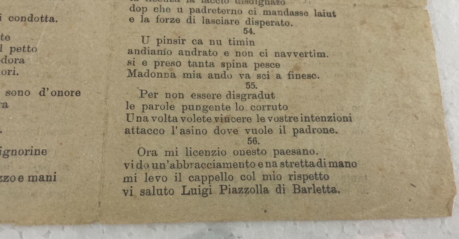 Puglia, Bari, Barletta: Luigi Piazzolla, Poesia Popolare. Antico Raro Foglio Volante