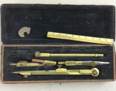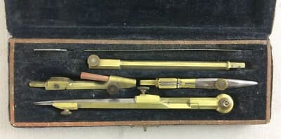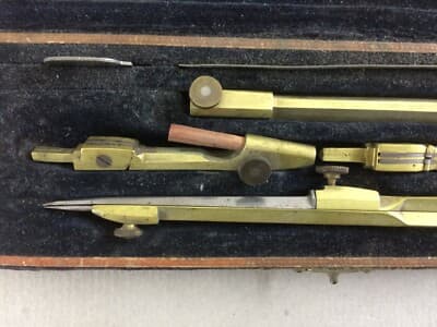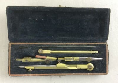 Antico Set Da Disegno Con Compasso In Astuccio, Compassi Milano