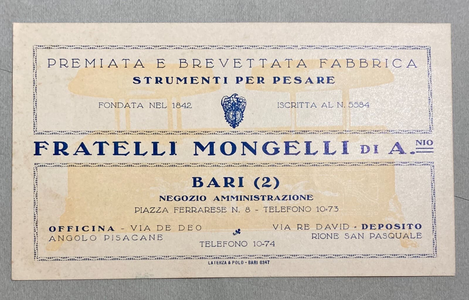 Puglia Bari Ditta Mongelli Bilance E Pesi Fiera Del Levante Pubblicitaria 1930