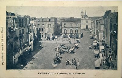 Campania, Pozzuoli. Antica Animata Veduta, Edizione Adinolfi. Piazza Con Statua, 1900 Circa